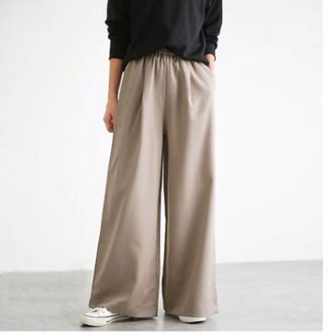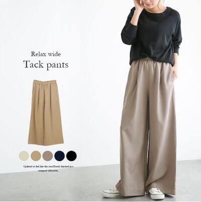 ズボン 大人 きれいめ シーズンレス レディース テレワーク リモートワークワイドパンツ タック バックウエストゴム 上品 服 ワイドパンツ タック入り 大きいサイズ