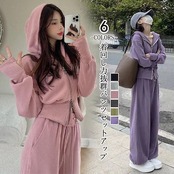 2枚購入で 2oo円FF!24新作 カジュアル セットアップ レディース パーカー スウェット 運動 ワイドパンツ 二点セット 着痩せ 大きいサイズ 裏起毛ファッション2