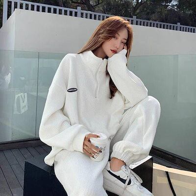 2枚購入で 2oo円FF!24新作 カジュアル 裏起毛 セットアップ レディース パーカー スウェット 運動 ワイドパンツ 二点セット 着痩せ 大きいサイズ 上下セット