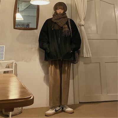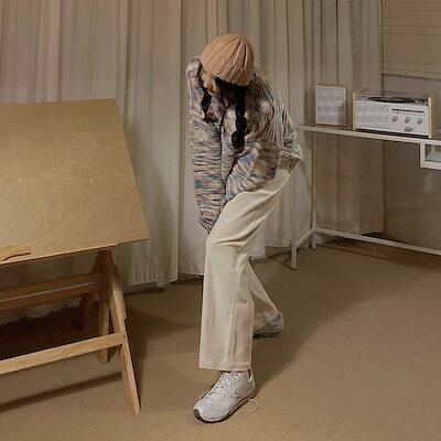25新作 韓国ファッションコーデュロイ ワイドレッグパンツ レディース シンプル ゆったり 大きいサイズ リラックス カジュアル ストレートパンツ