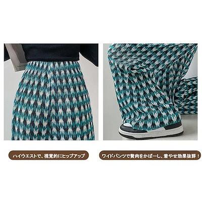 ひんやりボトムス ワイドパンツ 入荷 レディース プリーツ 大きいサイズ 低身長 柄 スラックスパンツ ワンマイルウェア カットフリー ウエストゴム タイダイ 黒 チェック柄 千鳥 ポケット付き