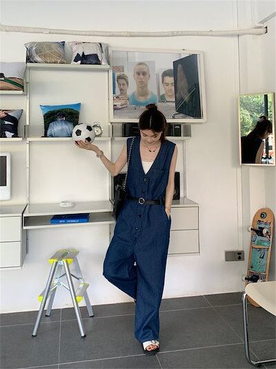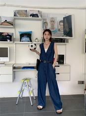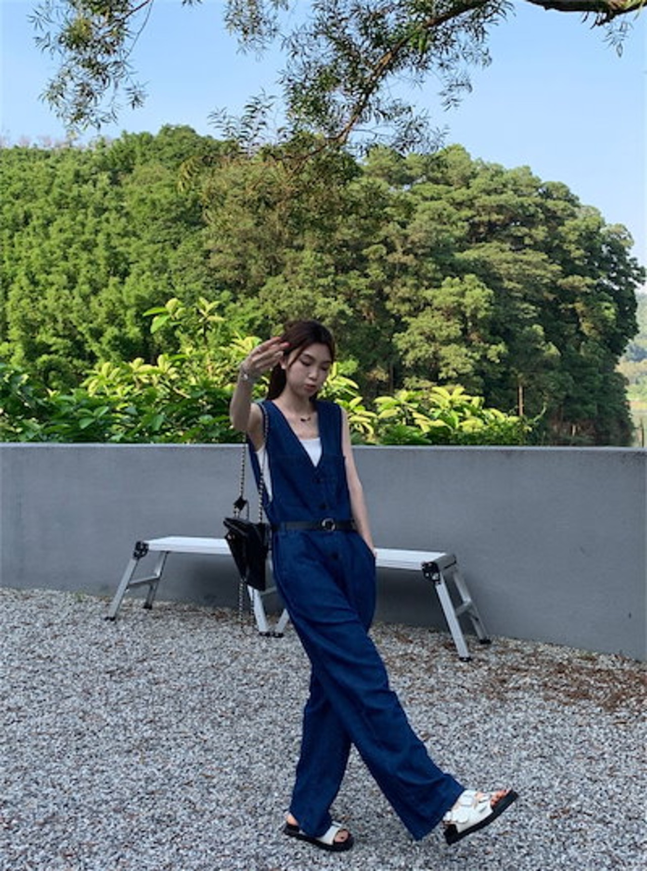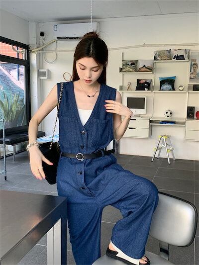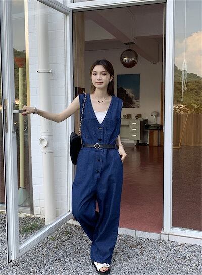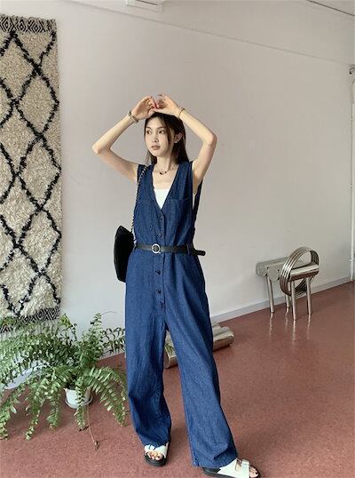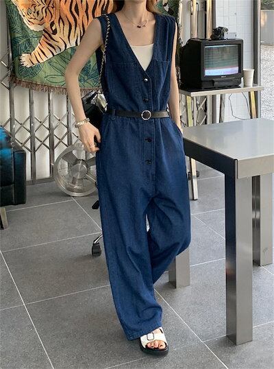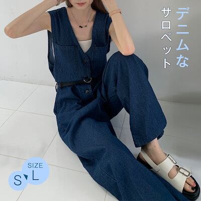 オールインワン レディース サロペット パンツ デニム パンツ ワイドパンツ 春 秋 Vネック 深Vネック きれいめ 着痩せ 大きいサイズ カジュアル おしゃれ 体型カバー ゆったり 女性 お呼ばれ