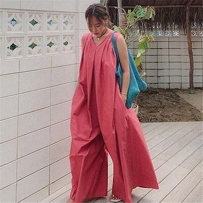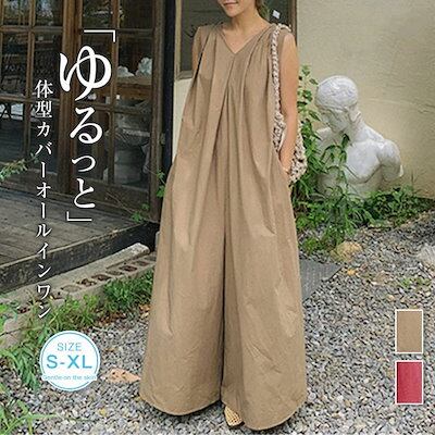 オールインワン レディース ワイドパンツ 春 夏 ロング丈 ゆったり 体型カバー 女性 お呼ばれ 可愛い 大きいサイズ おしゃれ ゆるっと カジュアル シンプル ナチュラル 着痩せ 春物 春 夏 秋
