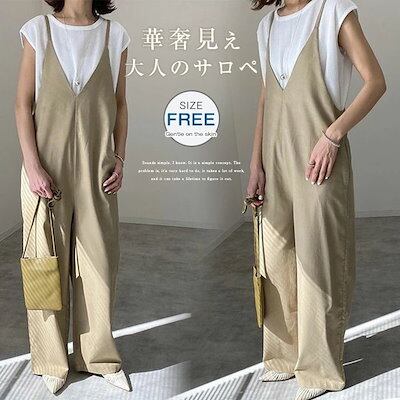 オールインワン レディース ワイドパンツ 春 夏 秋 ゆったり サロペットパンツ 体型カバー 女性 お呼ばれ 可愛い ワイドシルエット 大きいサイズ シンプル おしゃれ ゆったり カジュアル ナチュラ