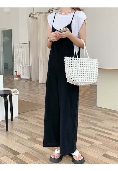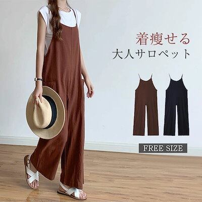 オールインワン サロペット パンツ ワイドパンツ 春 秋 レディース ゆったり 体型カバー 女性 お呼ばれ 可愛い 大きいサイズ おしゃれ ゆったり カジュアル ナチュラル 着痩せ 薄手 リゾート