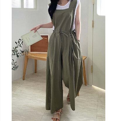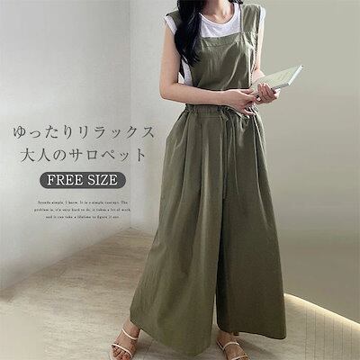 サロペット パンツ レディース ワイドパンツ 春 夏 秋 リネン風合い ゆったり 体型カバー 女性 お呼ばれ 可愛い 無地 大きいサイズ おしゃれ ゆったり カジュアル ナチュラル 着痩せ 春物 春