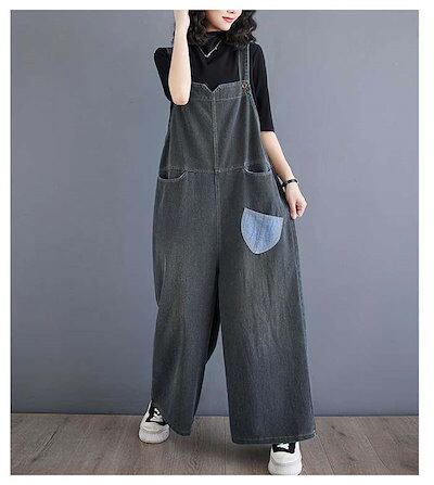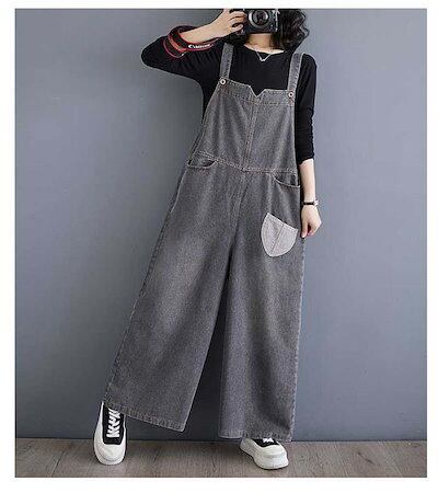 サロペット デニムパンツ オールインワン レディース ワイドパンツ 春 秋 マタニティ きれいめ 着痩せ 大きいサイズ カジュアル おしゃれ 体型カバー ゆったり 女性 お呼ばれ 可愛い 無地 お