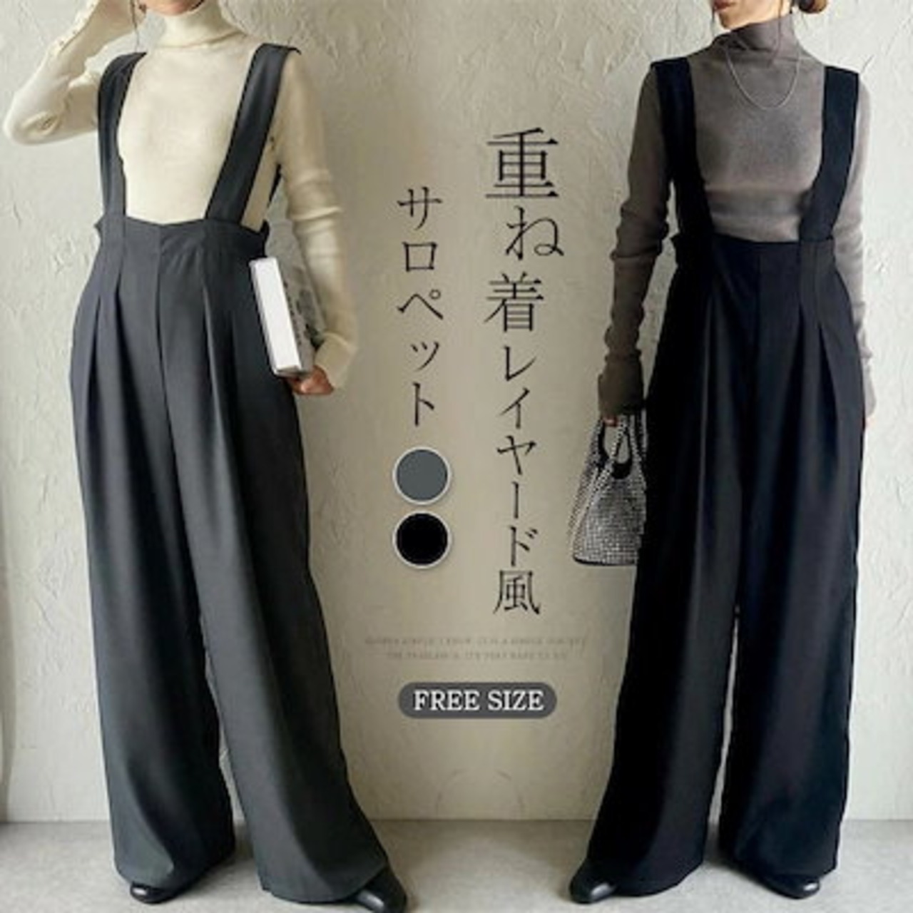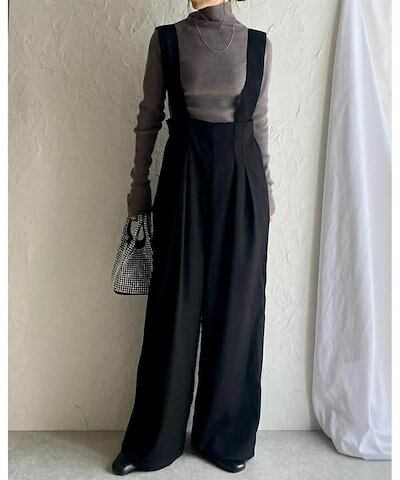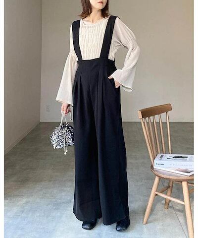 サロペット パンツ オールインワン レディース パンツ ワイドパンツ 春 秋 重ね着 レイヤード風 きれいめ 着痩せ カジュアル おしゃれ 体型カバー ゆったり 女性 お呼ばれ 可愛い 無地 おしゃれ