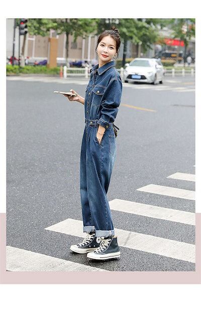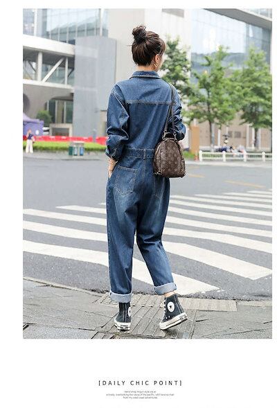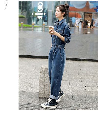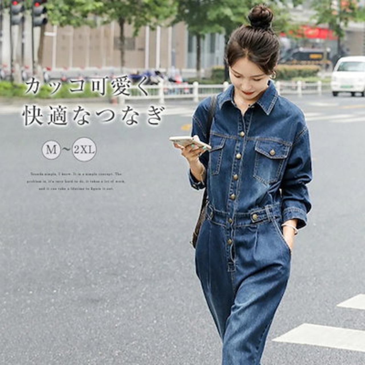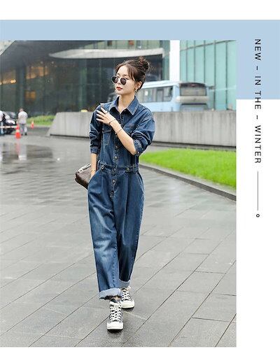 オールインワン レディース デニム 長袖 ワイドパンツ 春 秋 ゆったり 体型カバー 女性らしい お呼ばれ 可愛い 大きいサイズ おしゃれ ゆるっと カジュアル ナチュラル ゆったり シンプル 着痩