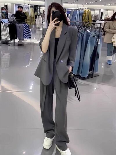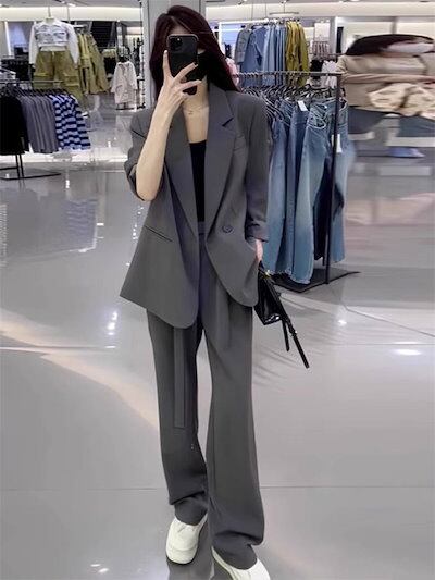 セットアップ スーツ レディース パンツスーツ 2点セット 洗える Vネック OL 長袖 ワイドパンツ ロング丈 ビジネス リクルート オールシーズン 春 夏 秋 冬 大きいサイズ 上品 入学式 ジャ