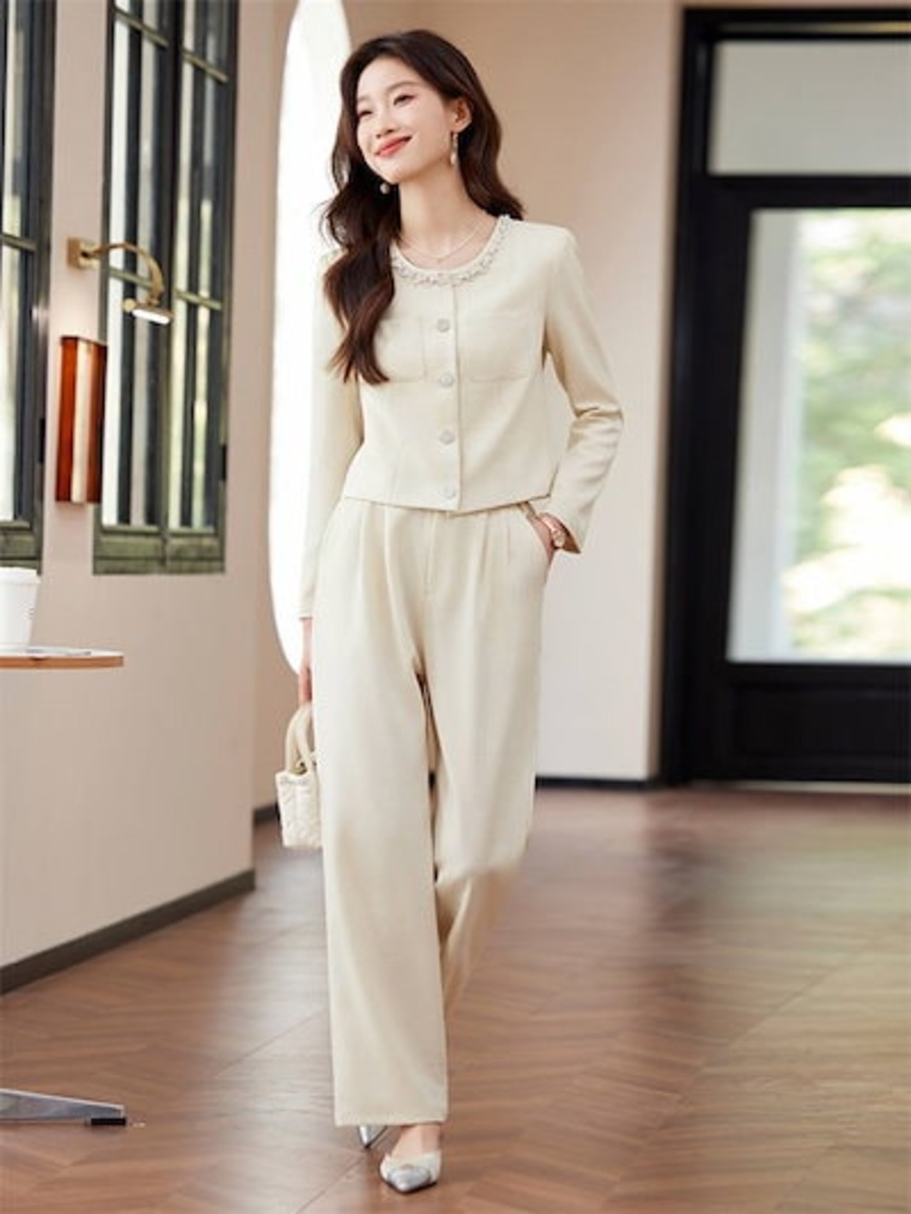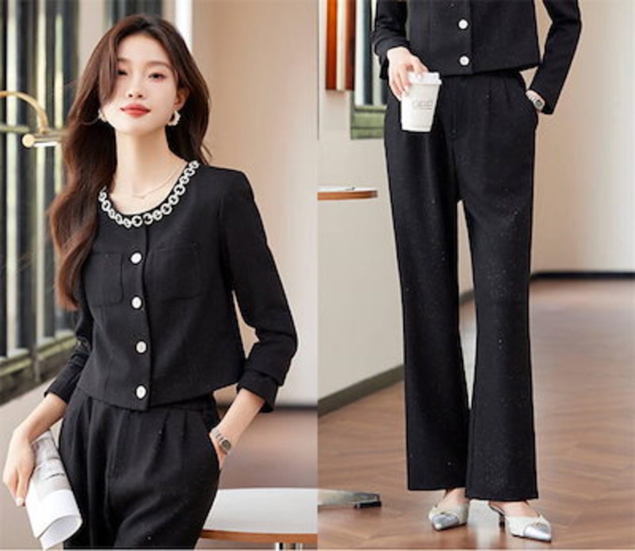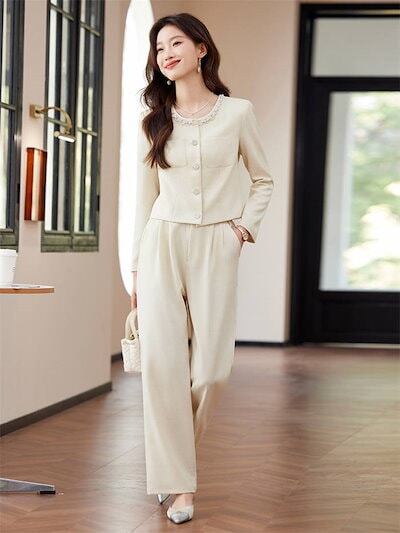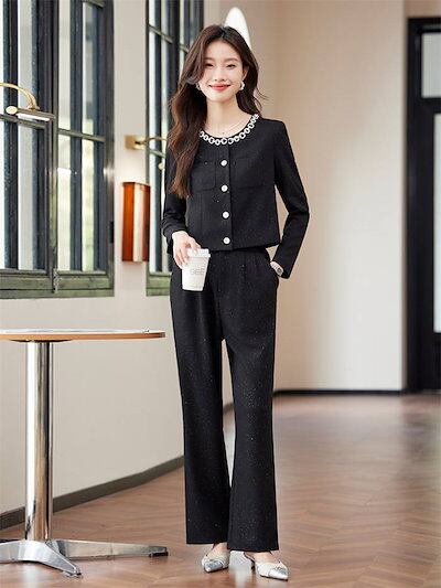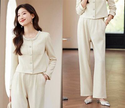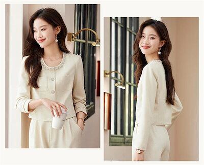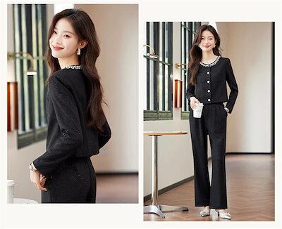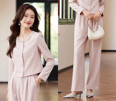 パンツスーツ セットアップ スーツ レディース 洗える 2点セット 長袖 ロング丈 ビジネス リクルート オールシーズン 春 夏 秋 冬 大きいサイズ 上品 入学式 ジャケット ワイドパンツ パンツド