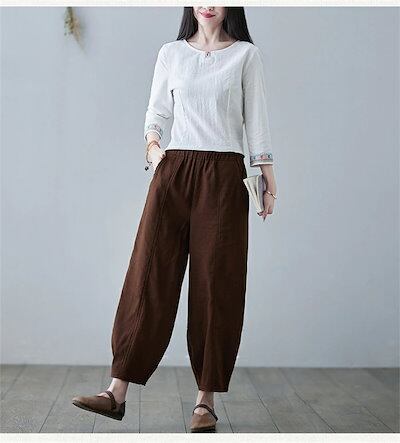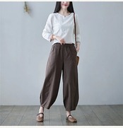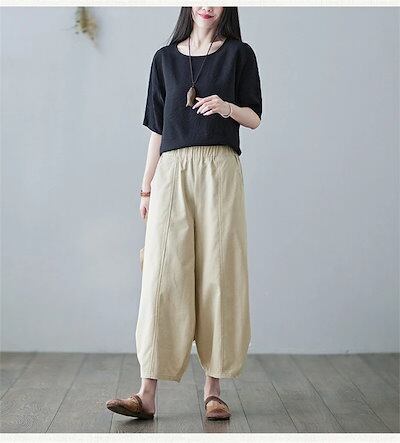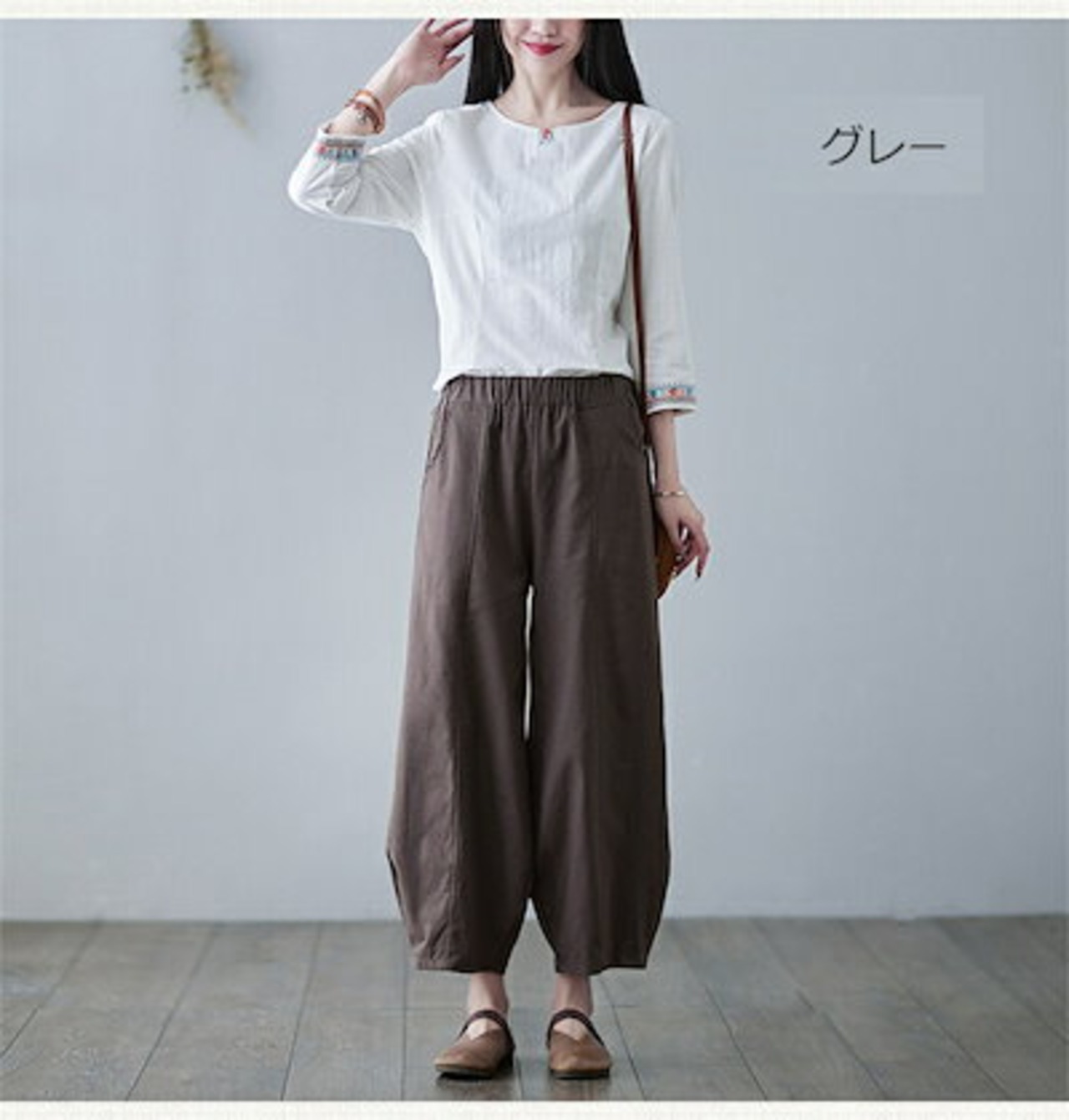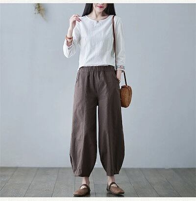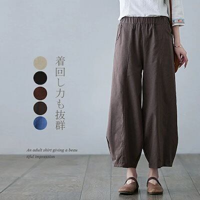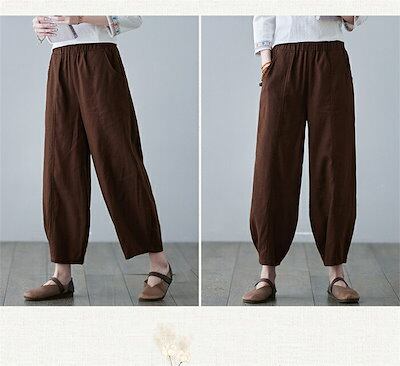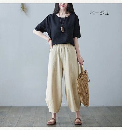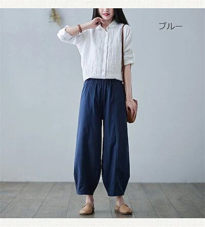 バルーンパンツ パンツ レディース サルエルパンツ ロング丈パンツ ワイドパンツ 綿麻風 アンクルパンツ 春 夏 ハロンパンツ イージーパンツ 綿麻パンツ ロングパンツ コクーンパンツ ウエストゴム