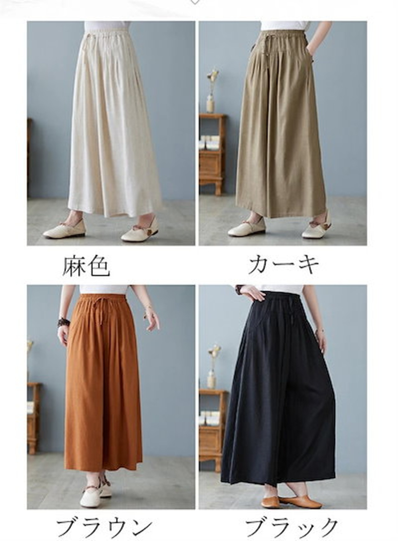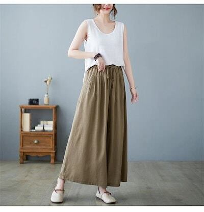 綿麻パンツ レディース 夏 ワイドパンツ パンツ リネン ガウチョパンツ 大きいサイズ ゆったり ワイド スカーチョ 春夏 きれいめ マキシ丈 ワイドパンツ ロング 着痩せ 美脚 スカンツ 体型カバー