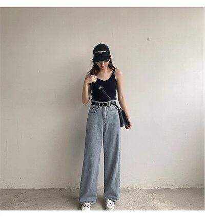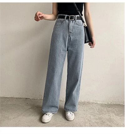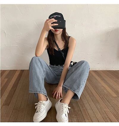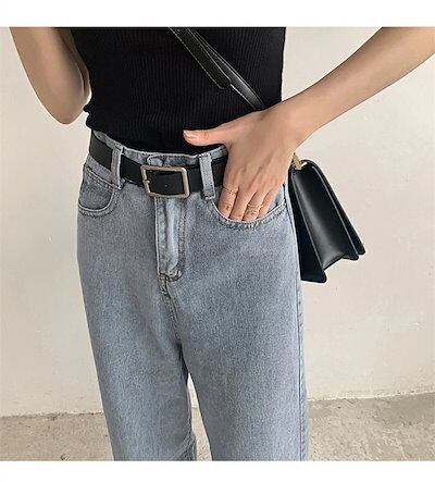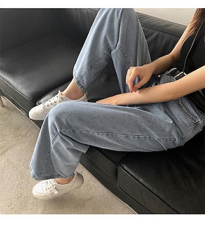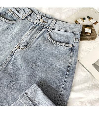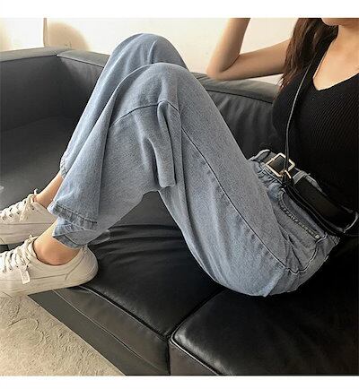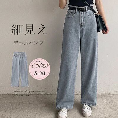 デニムパンツ ストレートパンツ レディース ボトムス ワイドパンツ パンツ デニム ロング ハイウエスト ウエストゴム ワイド ストレート ロングパンツ 春 夏 ジーンズ ポケット付き ゆったり 体型