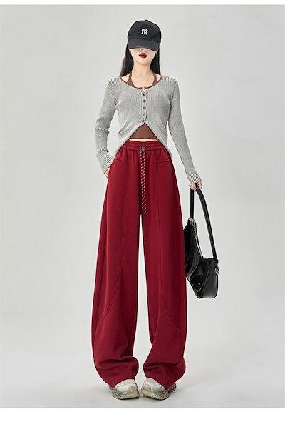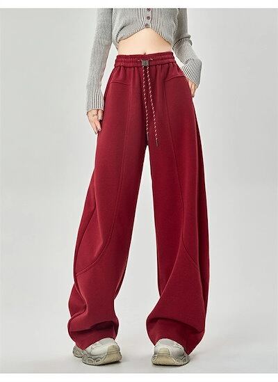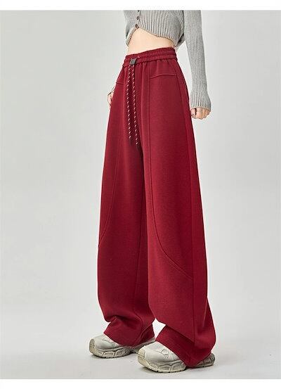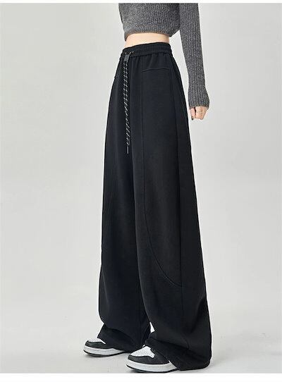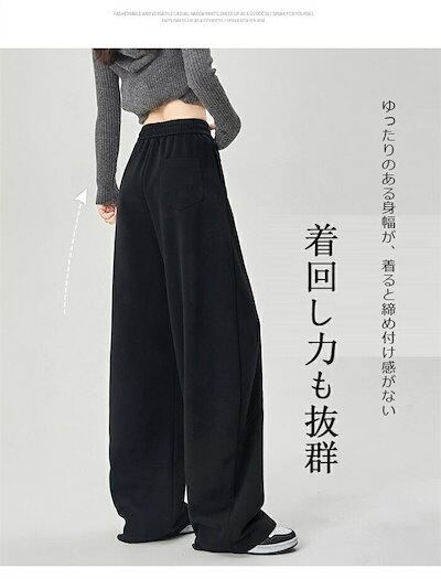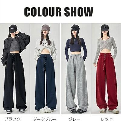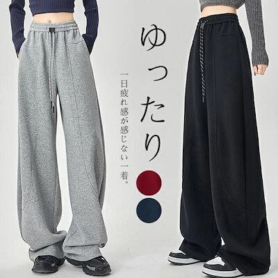 ワイドパンツ ガウチョパンツ レディース パンツ ロング丈 無地 イージーパンツ 春 秋冬 ロングパンツ ワイド スウェット ウエストゴム ゆったり 体型カバー ジャージ カーブパンツ 長ズボン ワ