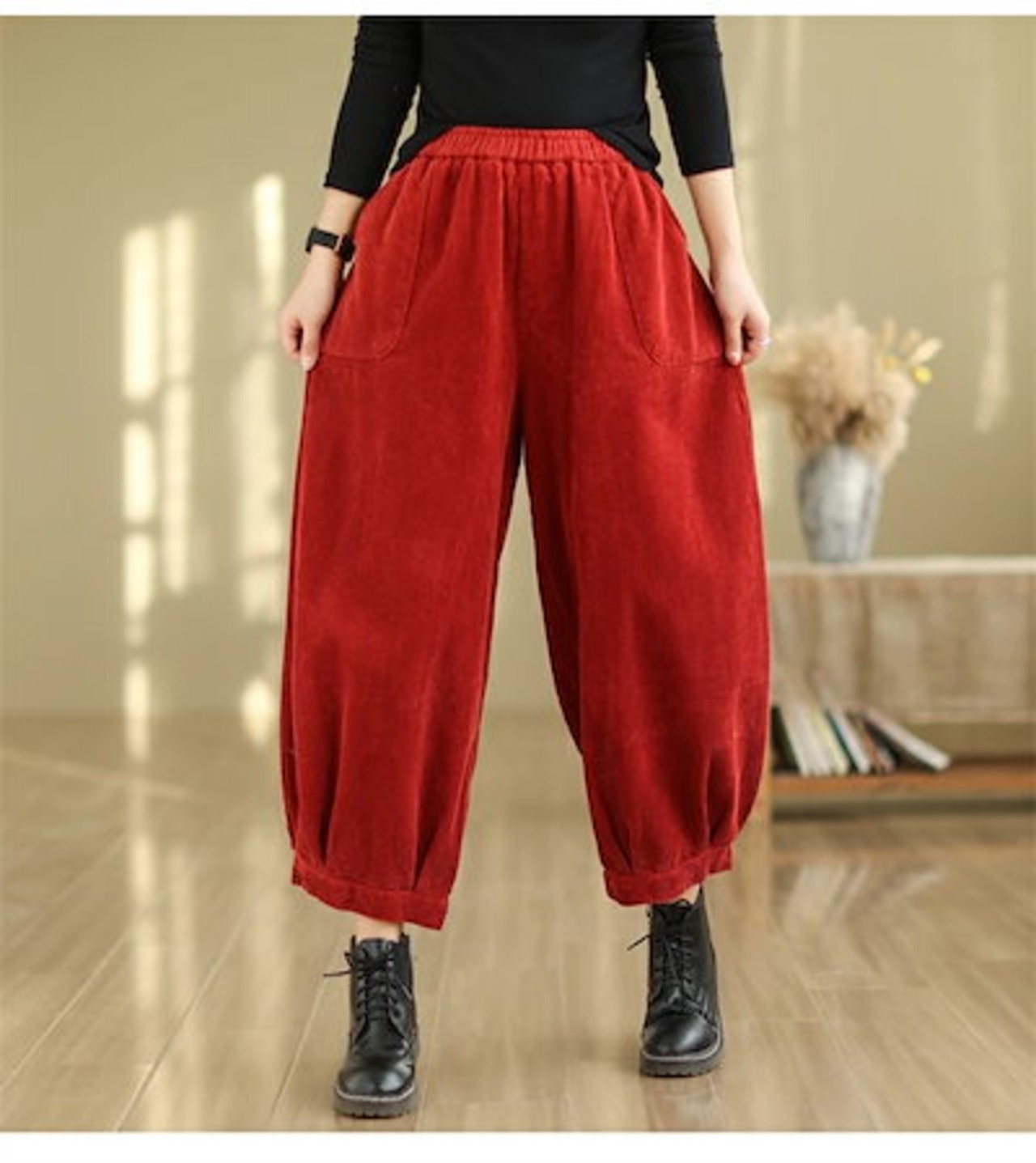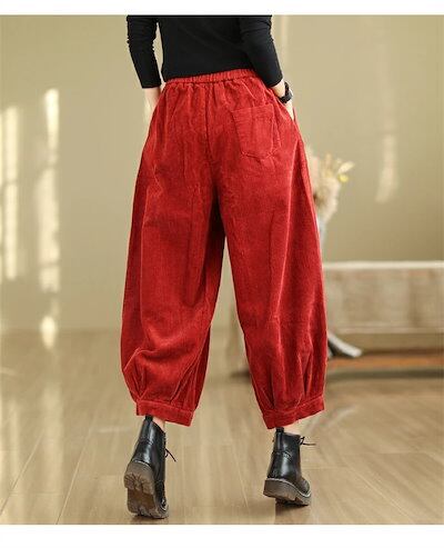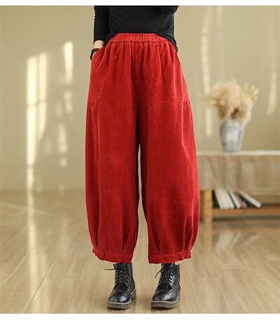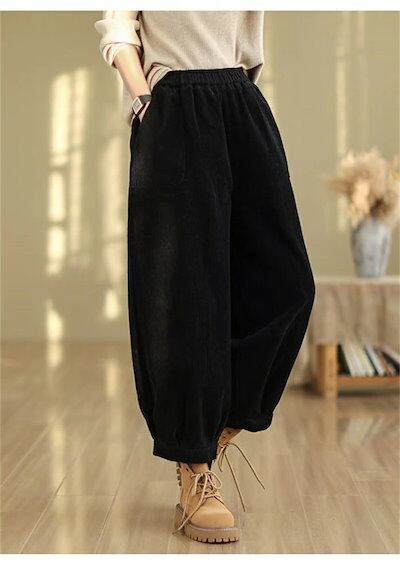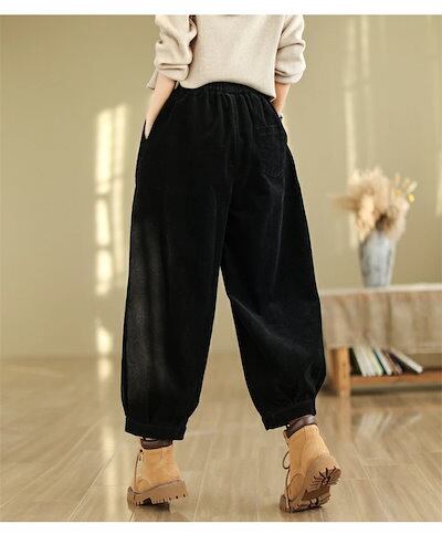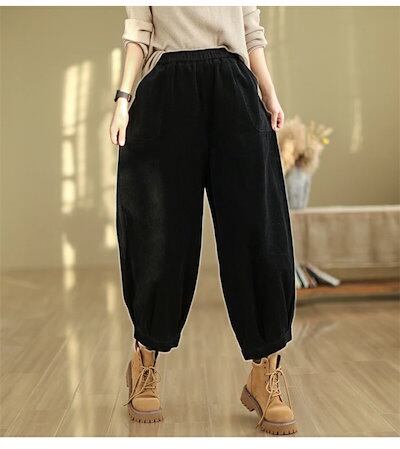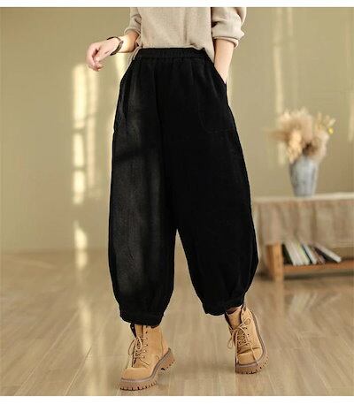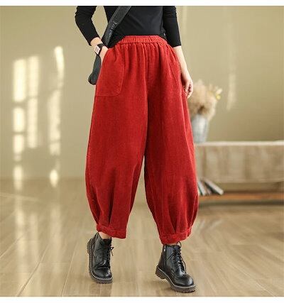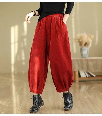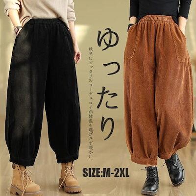 パンツ コーデュロイ レディース バルーンパンツ 秋冬 ワイドパンツ サーカスパンツ コクーンパンツ 春 ボトムス パンツ ハロンパンツ 無地 コクーン ウエストゴム ロングパンツ サルエルパンツ