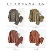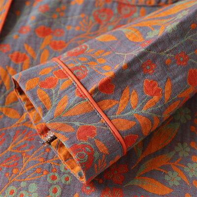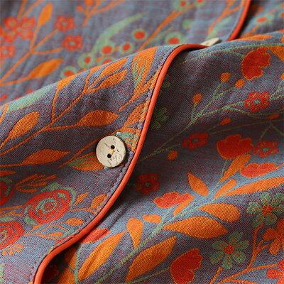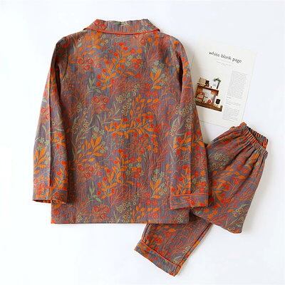 ガーゼ パジャマ レディース 花柄 総柄 ルームウェア 春 秋 冬 長袖 襟付き ロングパンツ ワイド 部屋着 セットアップ 2点セット 寝間着 寝巻き 上下セット 前開き 大きいサイズ 大人 ダブル