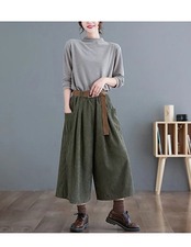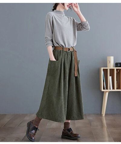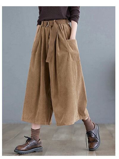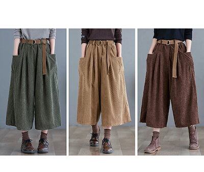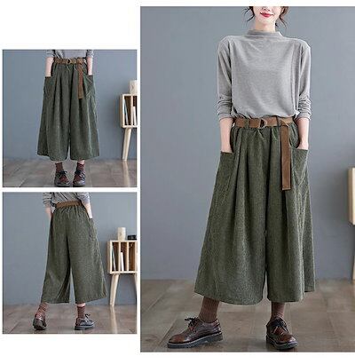 ワイドパンツ レディース ガウチョパンツ 秋冬 コーデュロイ パンツ 七分丈 ワイド ガウチョ 大きいサイズ ボトムス 冬 秋 春 ボリューム ハイウエスト ウエストゴム ゆったりシルエット 大人 暖
