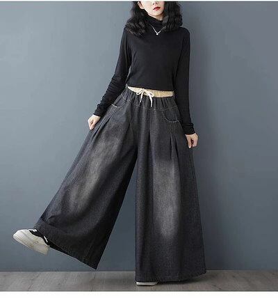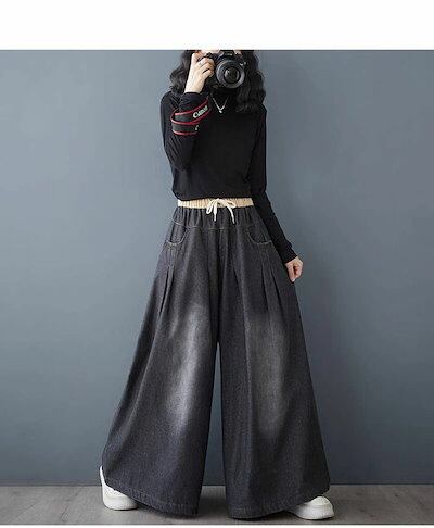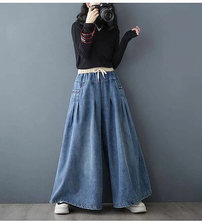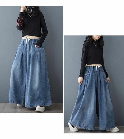 ワイドパンツ デニム デニムパンツ レディース パンツ レディース ボトムス ズボン 長ズボン ロングパンツ ロング丈 ウエストゴム 大きいサイズ ゆったり ワイドデニム ジーンズ おしゃれ 春 秋