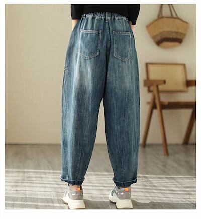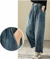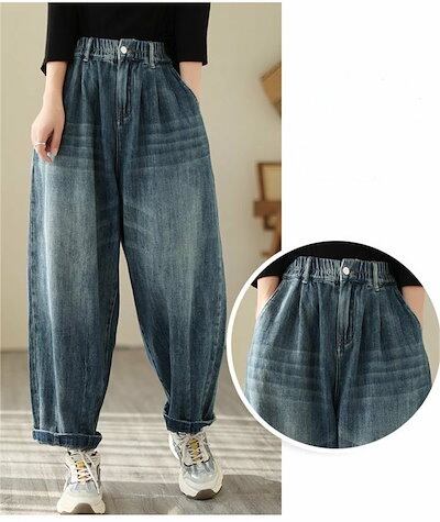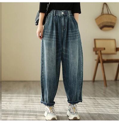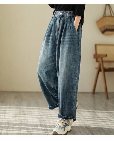 デニムワイドパンツ レディース バルーンパンツ コクーンパンツ デニム ボトムス パンツ ジーンズ 大人カジュアル 春夏 ナチュラル 森ガール ズボン ウエストゴム 大きいサイズ ゆったり 体型カバ