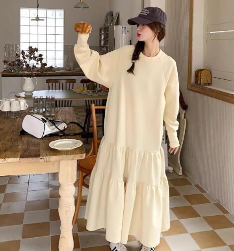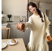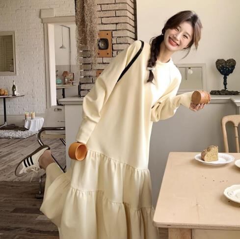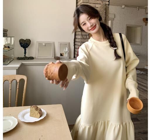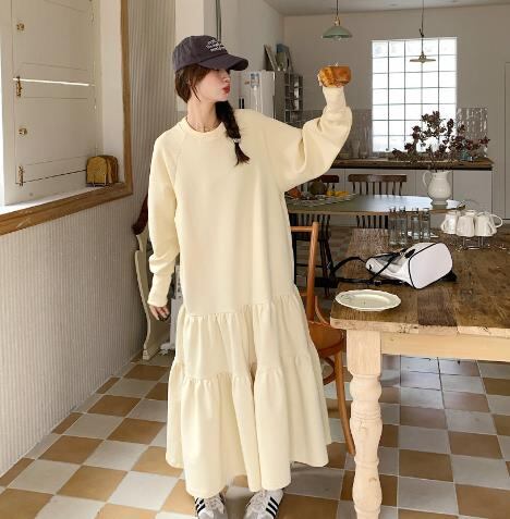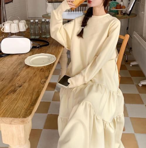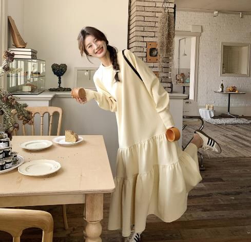 u23839 レディース ワンピース 2024春夏新作 ラウンドネック パーカー ロング丈