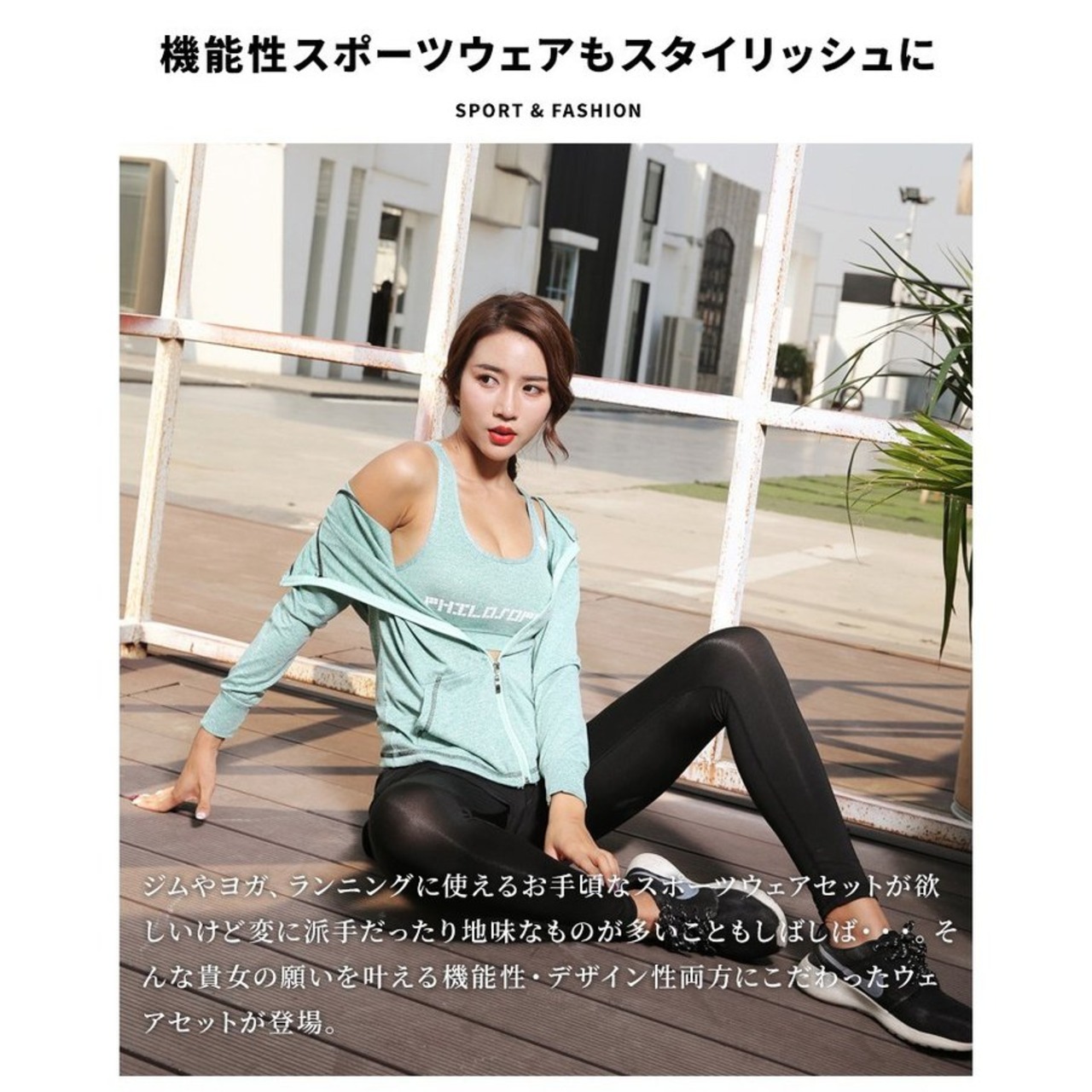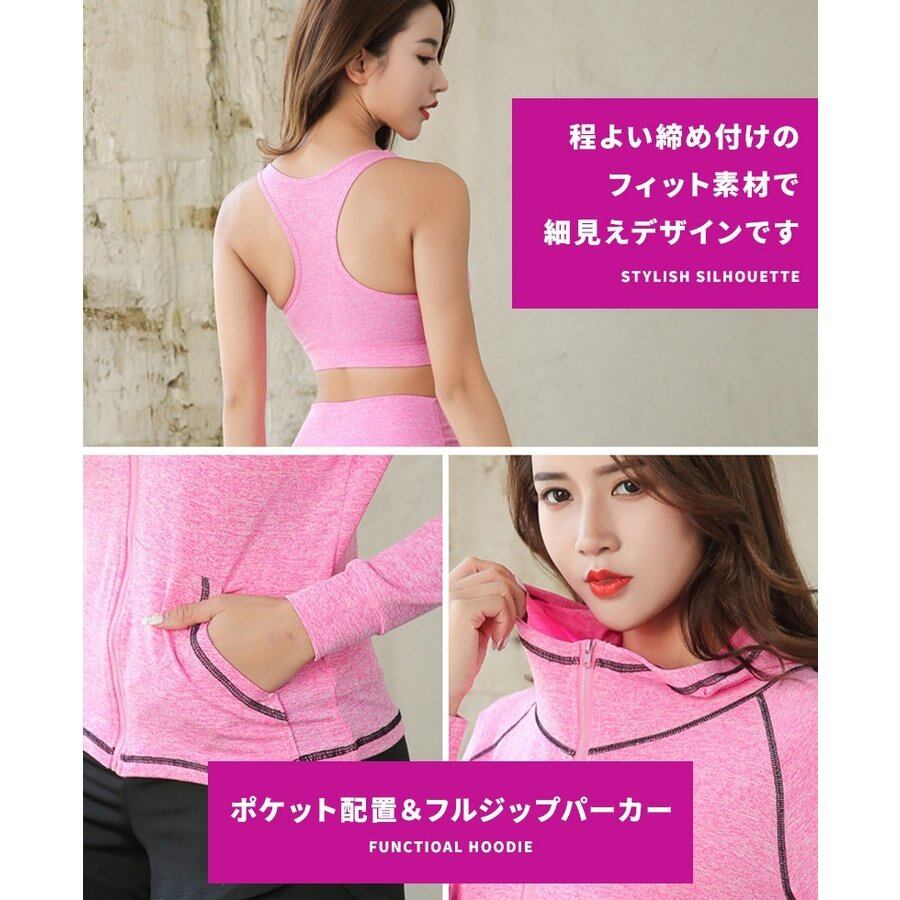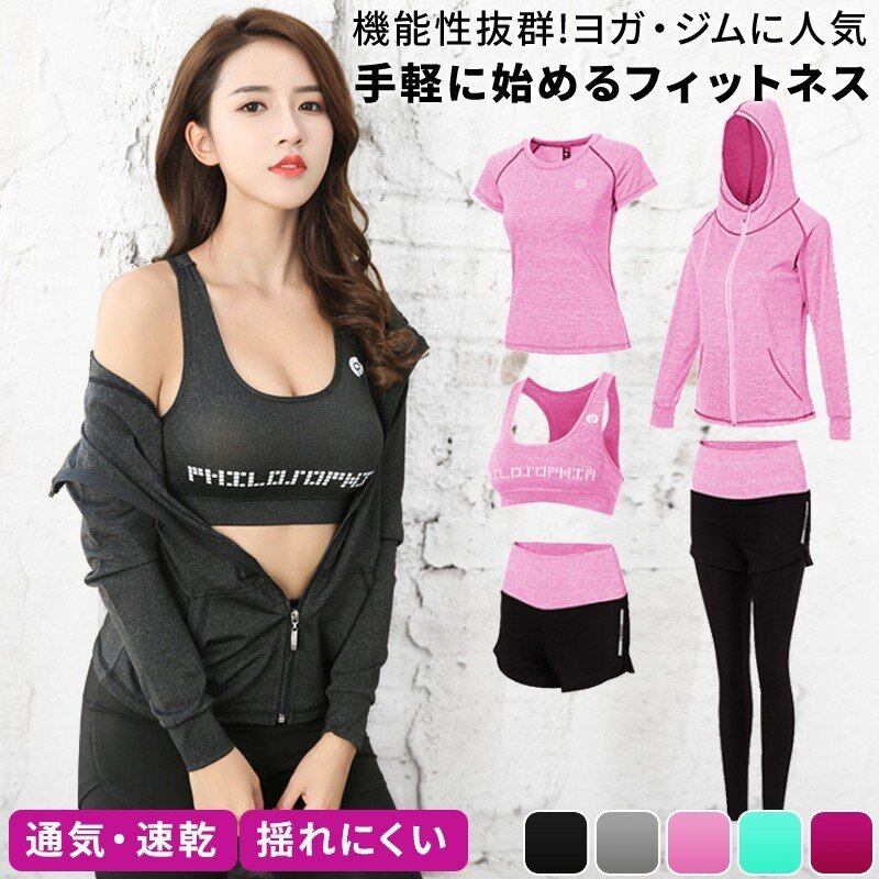 スポーツウェア フィットネスウェア レディース 上下セット トップス パーカー 5点セット ランニング ヨガ
