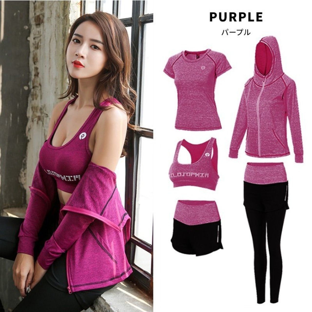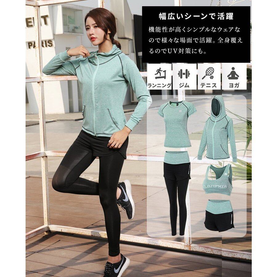スポーツウェア フィットネスウェア レディース 上下セット トップス パーカー 5点セット ランニング ヨガ