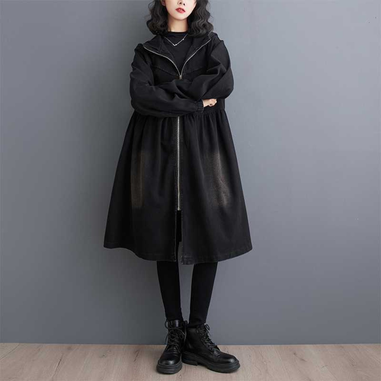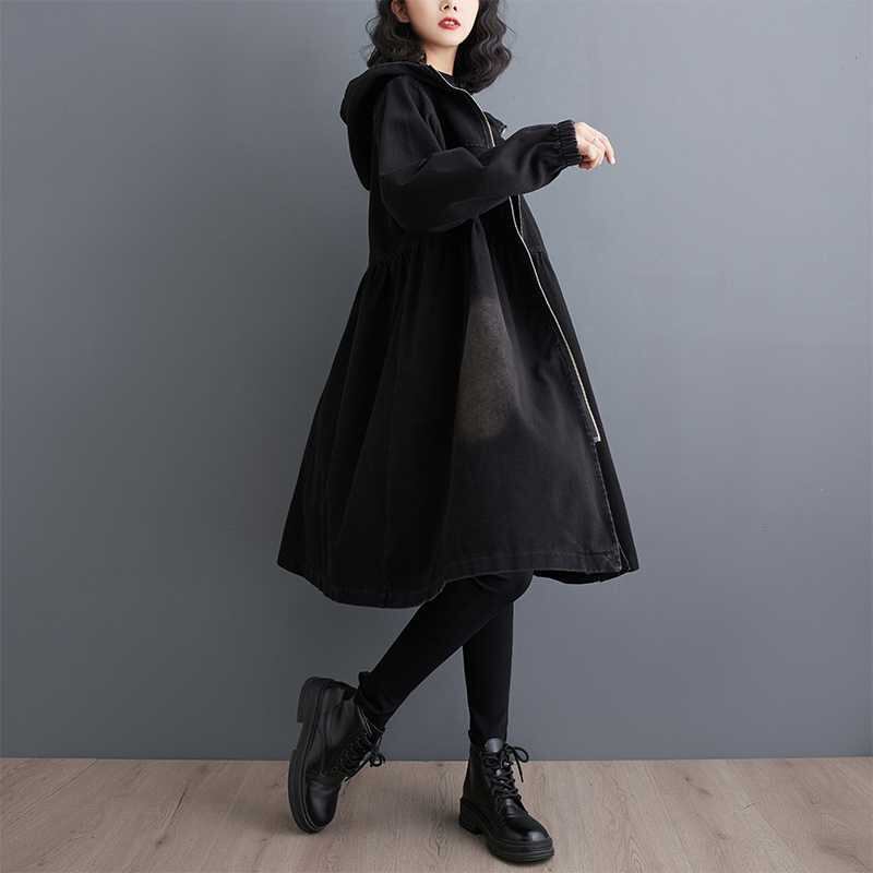 【 2024春新作】韓国風コートアウター レディース帽子付けパーカーコート