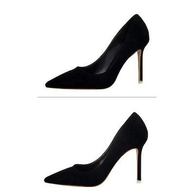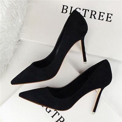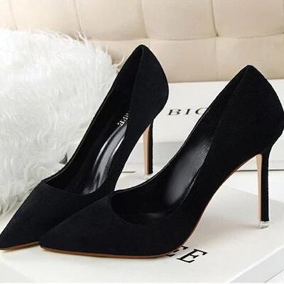 パンプス レディース ハイヒール ラウンドトゥ 9cmヒール スエード調 通勤 美脚 大きいサイズ 靴 痛くない 二次会 履きやすい 通気性