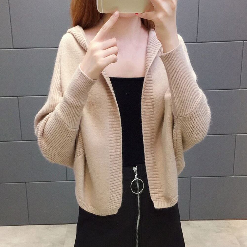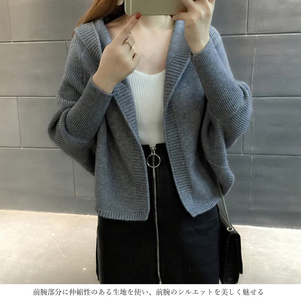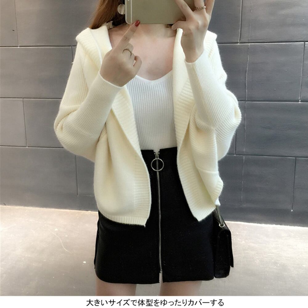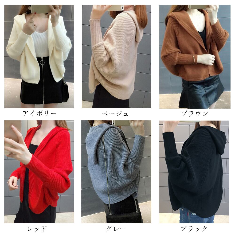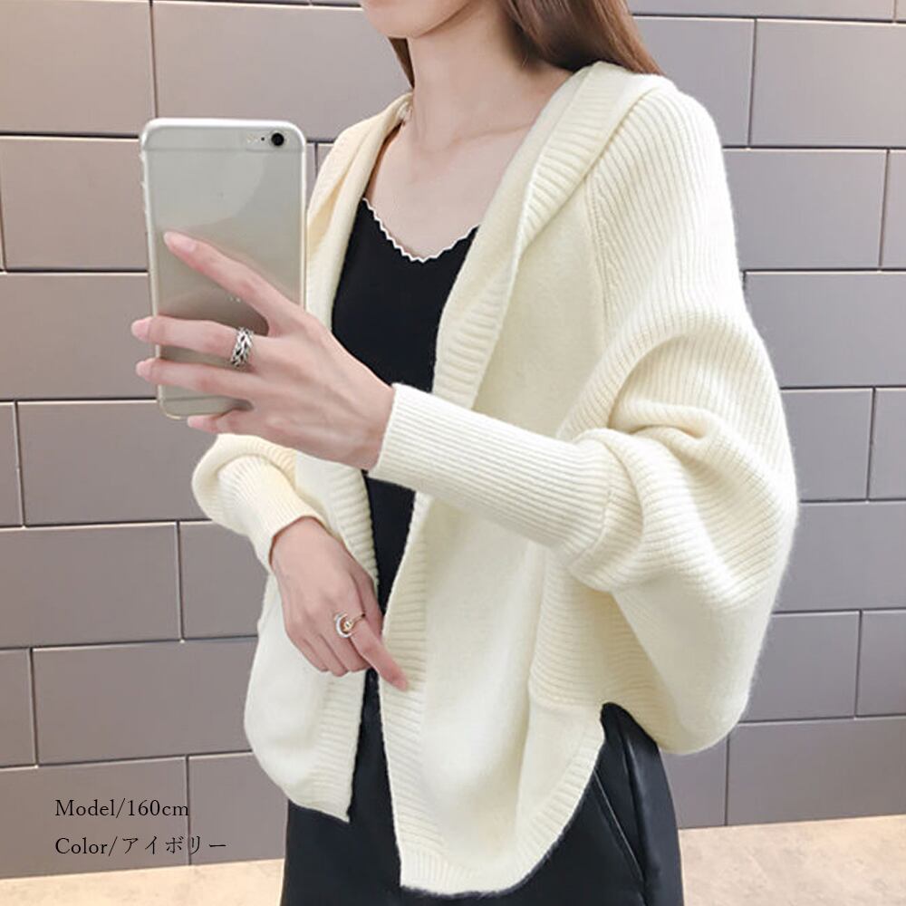 【日本倉庫即納】 カーデガン ニット レディース ドルマンスリーブ 厚手 フード付き アウター