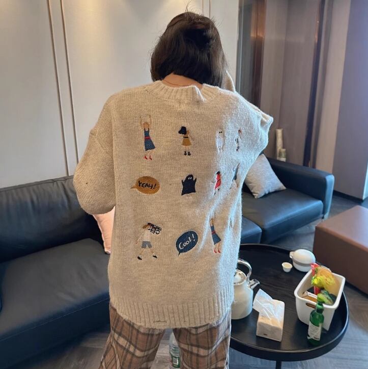 人気 韓国風 レディース服 2024年秋冬新作 トップス 刺繍 セーター カジュアル 2色展開