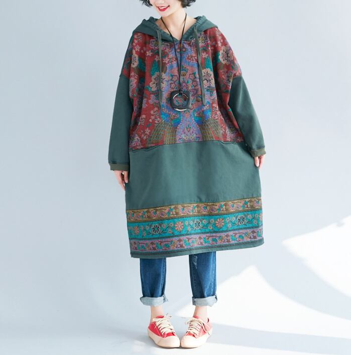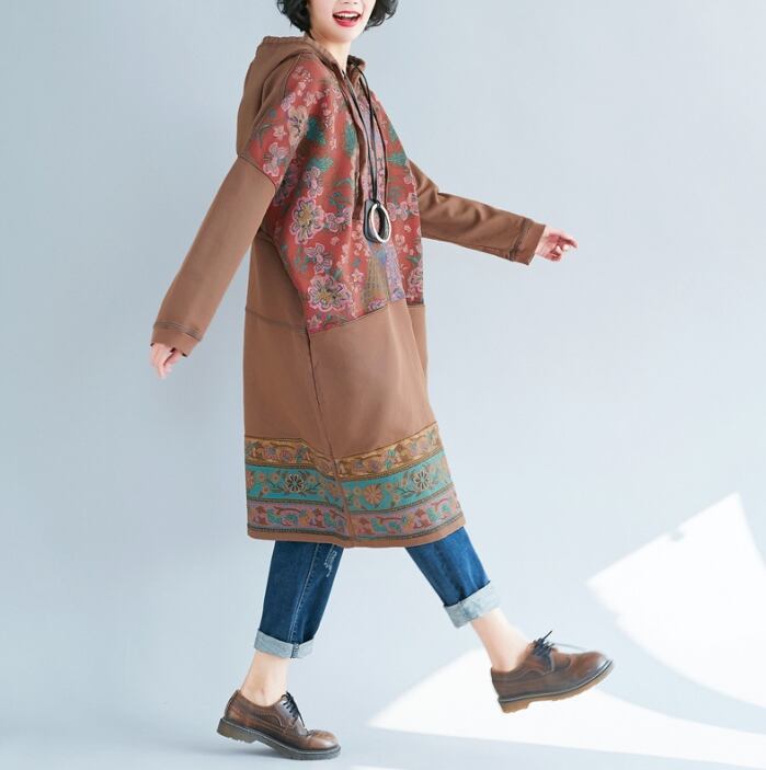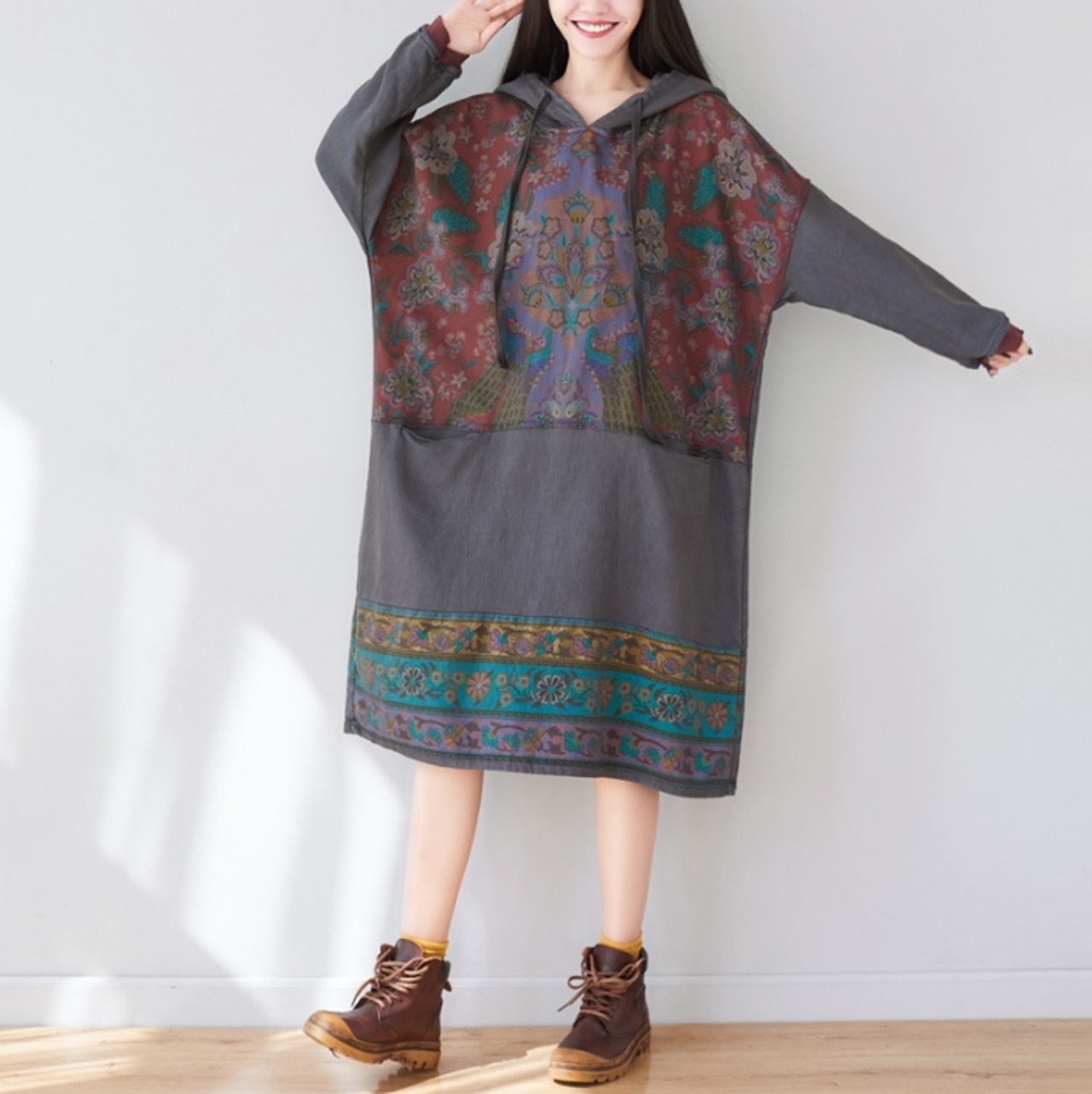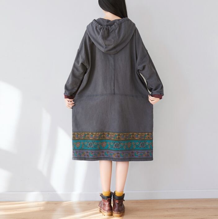 2024年春秋新作 レディース服 ワンピース ロングワンピース フード付き ゆったり 民族風 3色展開