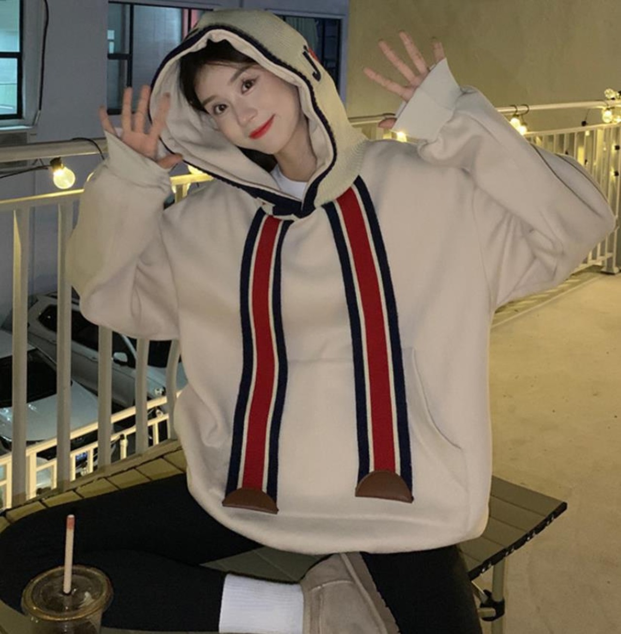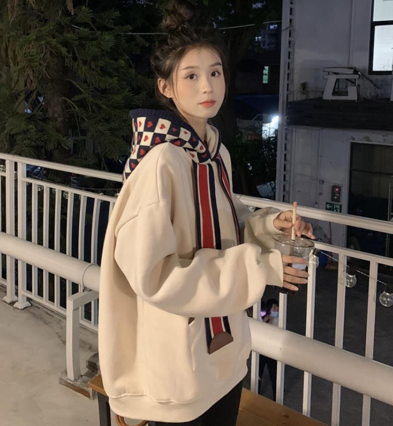 2022秋冬新作 レディース 女 長袖 帽子付け 裏起毛 プリント スウェット トップス アウター コート