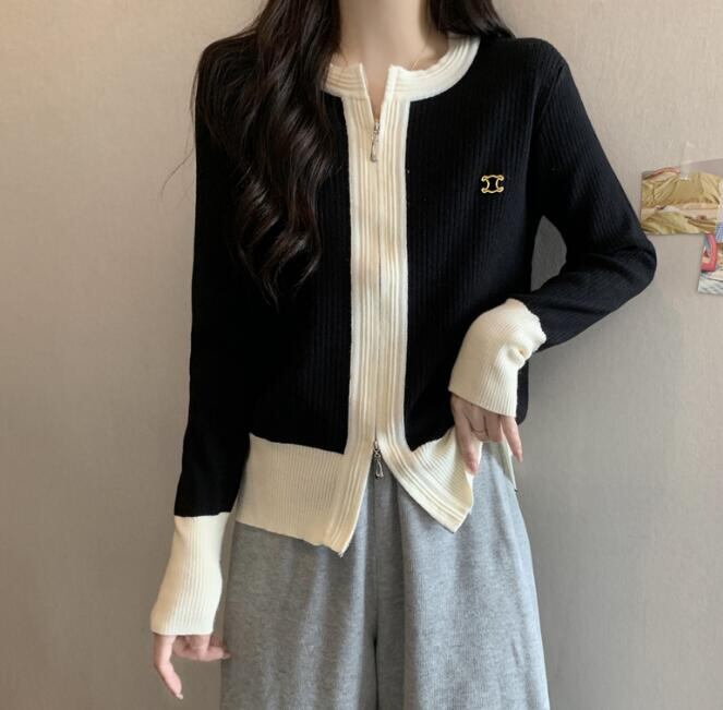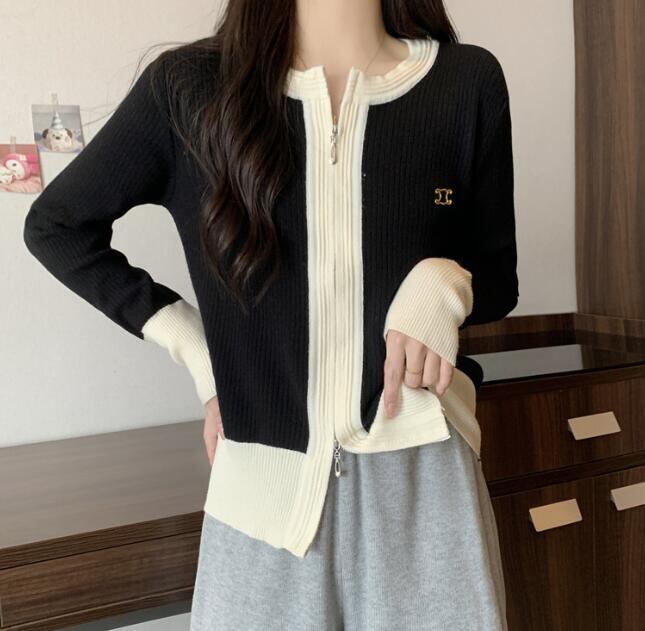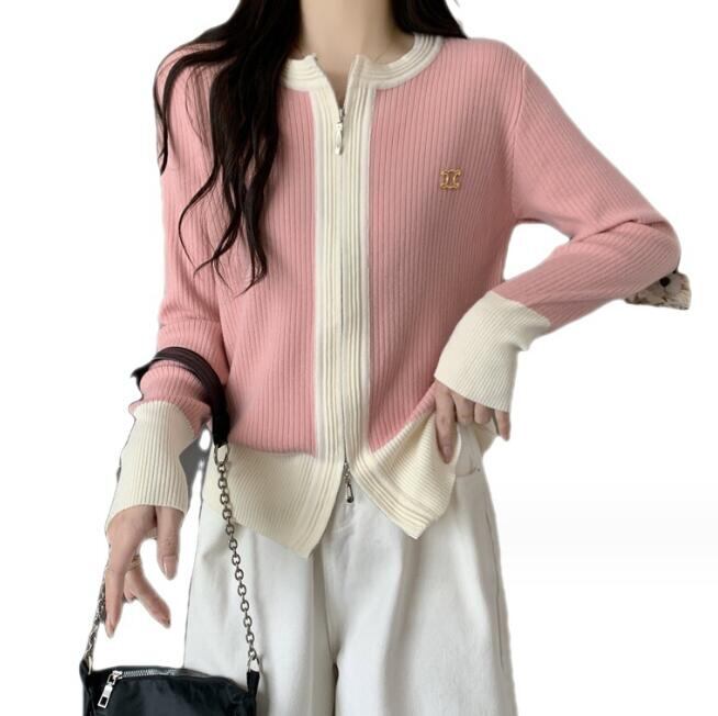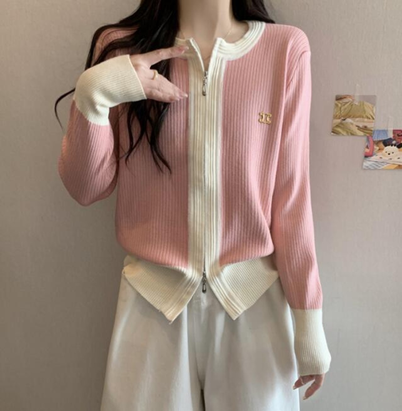 ダブルジッパーカーディガン ラウンドネック 通勤 オフィスカジュアル レディース 韓国ファッション