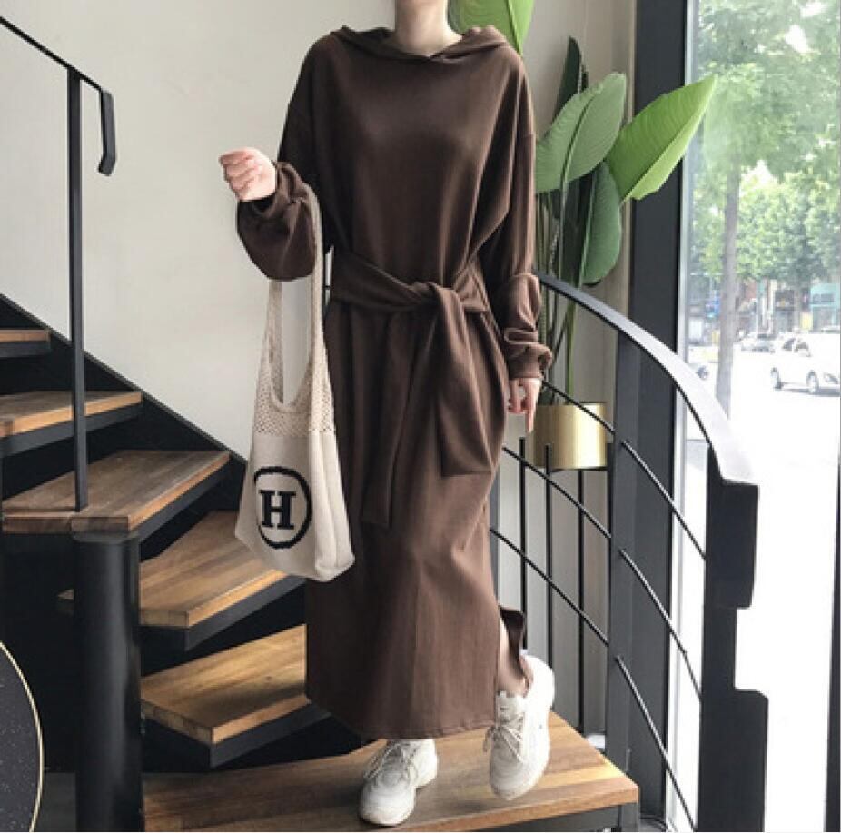 ワンピース パーカーワンピ レディース 秋冬 大きいサイズ ロング丈 長袖 着やせ マキシワンピ 通勤