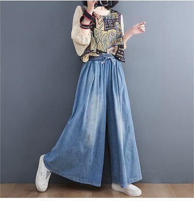 デニムパンツ ワイドパンツ レディース ガウチョパンツ デニム ゆったり ボトムス ジーパン チノパン バギー イージーパンツ 柔らか 森ガール デニム ズボン ウエストゴム 大きいサイズ 体型カバー