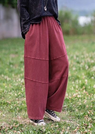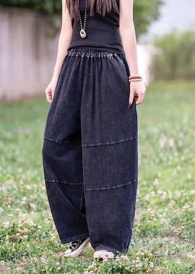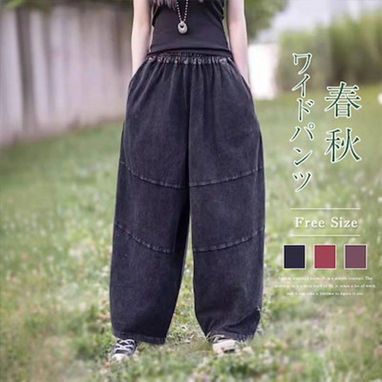 ワイドパンツ レディース ワイド パンツ ガウチョパンツ 切り替え 長ズボン ボトムス ロングパンツ 無地 綿混 ウエストゴム ゆったり 大人 カジュアル ナチュラム 体型カバー 着痩せ ゆる ブラッ