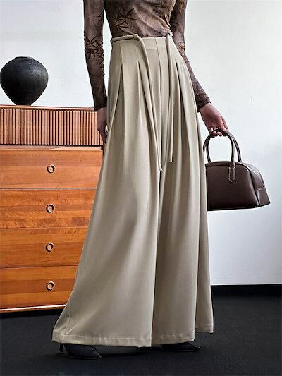 タックワイドパンツ レディース 春秋 パンツ ロングパンツ ガウチョパンツ 通勤 ボトムス 大人 リラックス オフィス フォーマル バギーパンツ イージーパンツ ゆったり カジュアル 体型カバー 上品