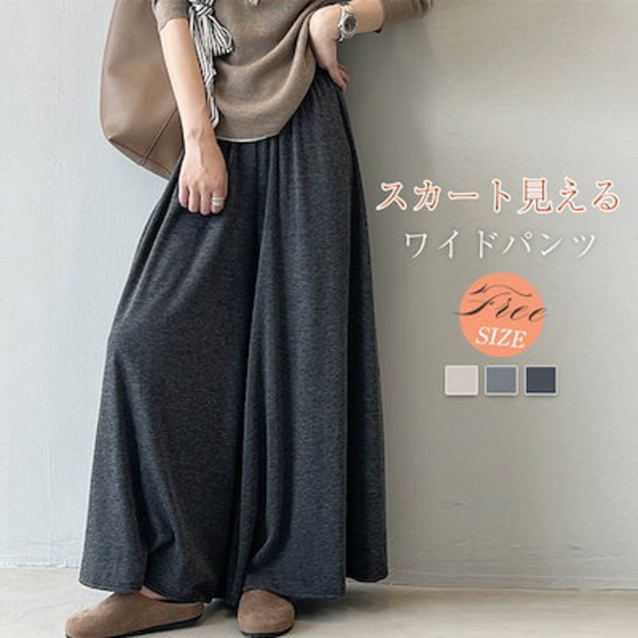 ワイドパンツ 秋 ガウチョパンツ スカート見える レディース フレアパンツ 柔らか ロングパンツ ウエストゴム バギーパンツ 大きいサイズ ゆったり リラックス 着心地よい ルームウェア オ