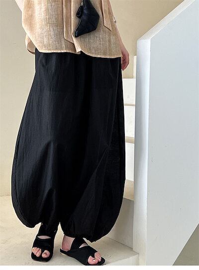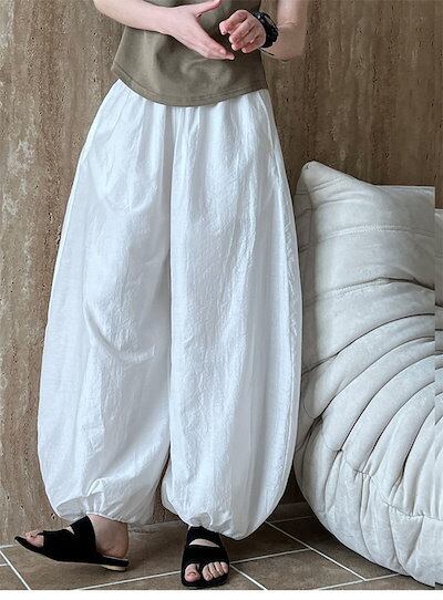 バルーンパンツ 夏 レディース パンツ 綿麻風 ワイドパンツ サーカスパンツ 薄手 柔らか ガウチョ ボトムス ウエストゴム バギーパンツ 大きいサイズ エスニック ナチュラル ゆったり 体型カバー