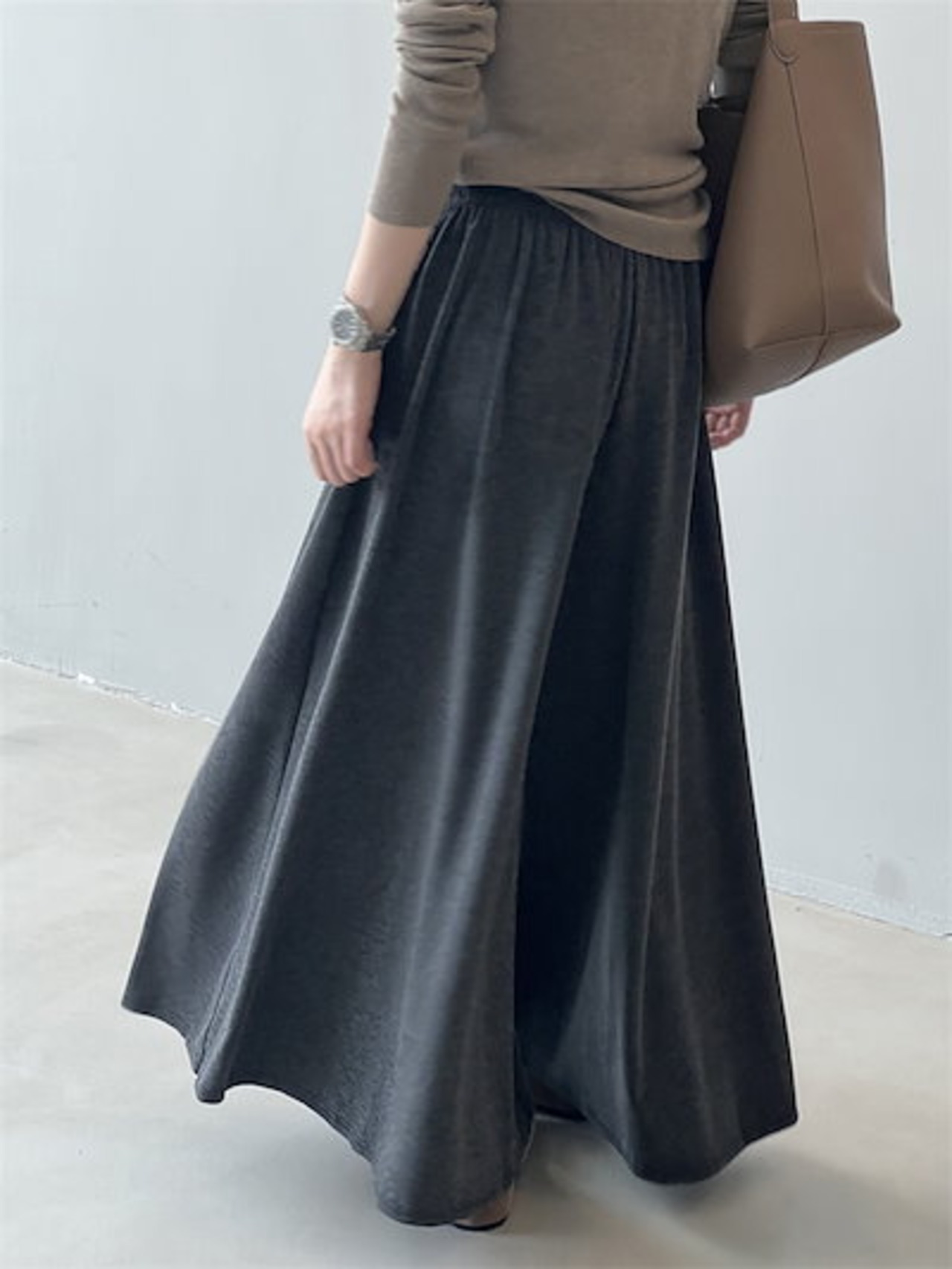 ワイドパンツ 秋 ガウチョパンツ スカート見える レディース フレアパンツ 柔らか ロングパンツ ウエストゴム バギーパンツ 大きいサイズ ゆったり リラックス 着心地よい ルームウェア オシャレ ふ