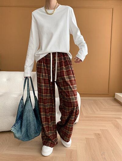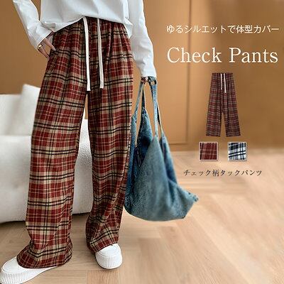 ワイドパンツ レディース チェック柄 ガウチョパンツ イージーパンツ ロング丈 パンツ ズボン ボトムス リラックスパンツ チェックパンツ 大きいサイズ ウエストゴム ゆったり 大きめ リラックス ス