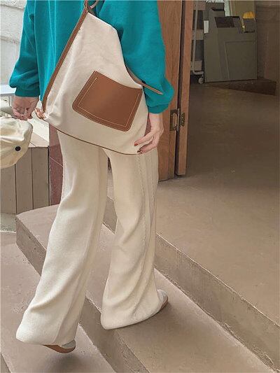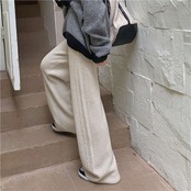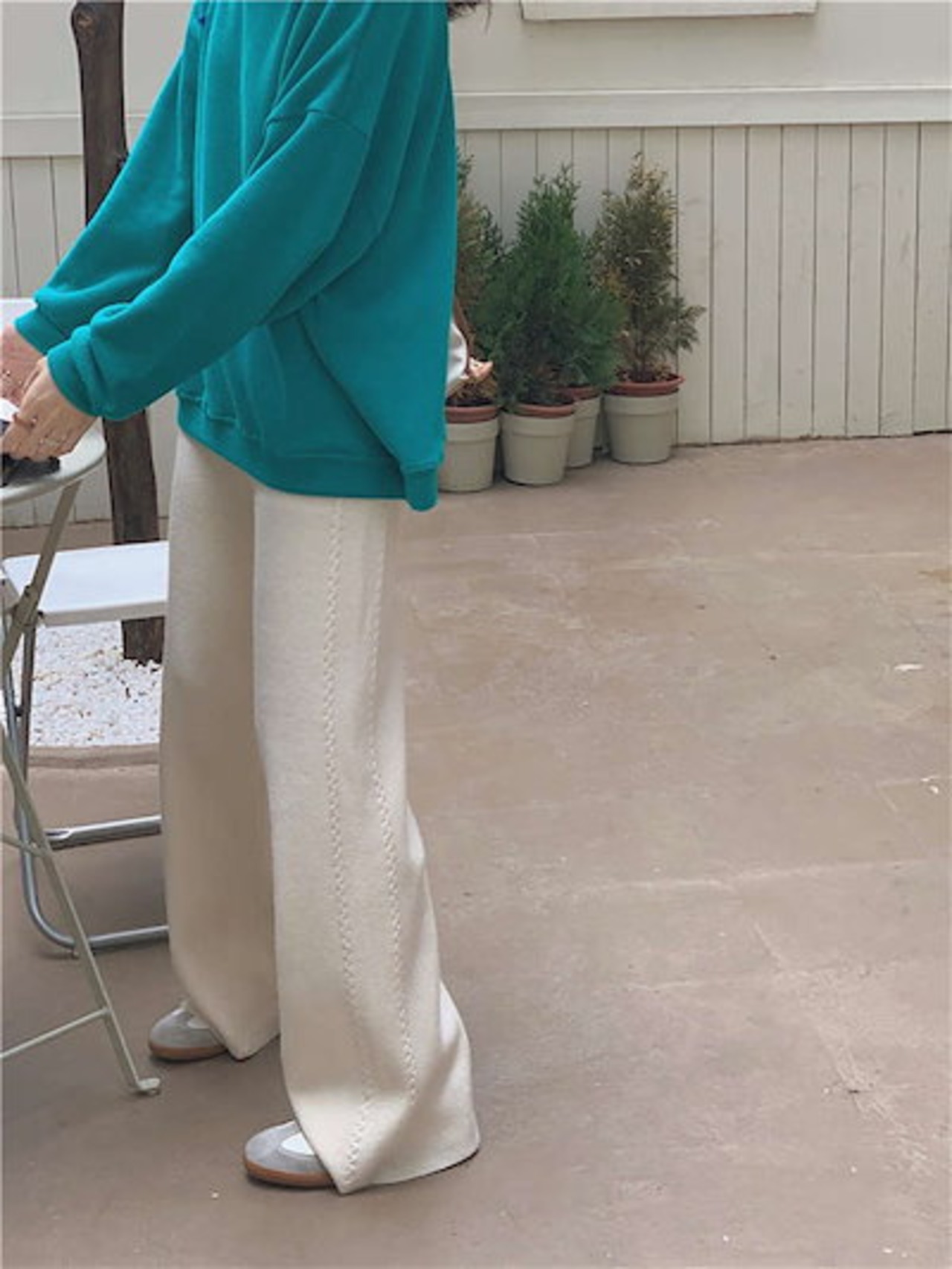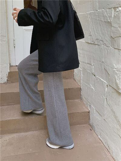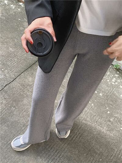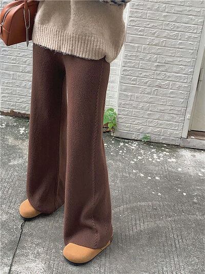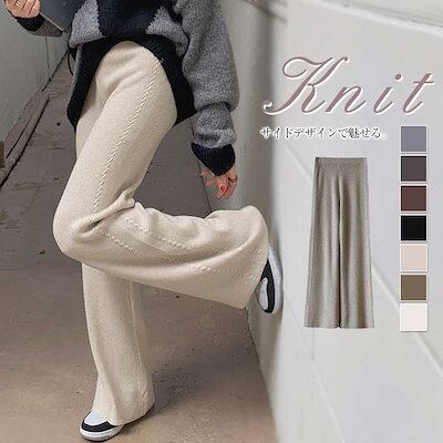 パンツ レディース 秋冬 ニット ワイドパンツ きれいめ ロング ボトムス ウエスト ゴム 暖か 防寒 ガウチョパンツ 大人 ゆったり リラックス きれいめ おしゃれ シンプル カジュアル 通勤 リブ