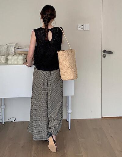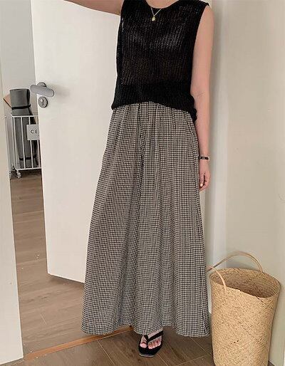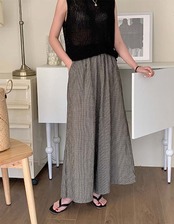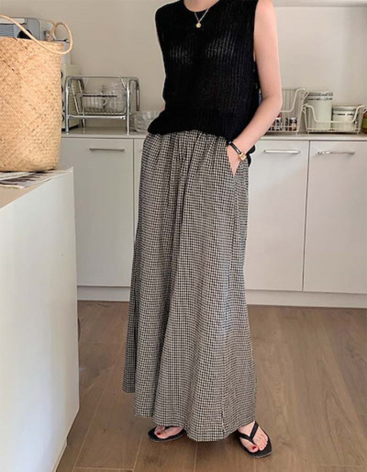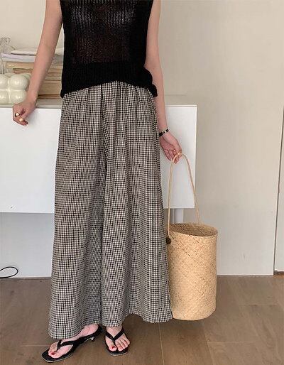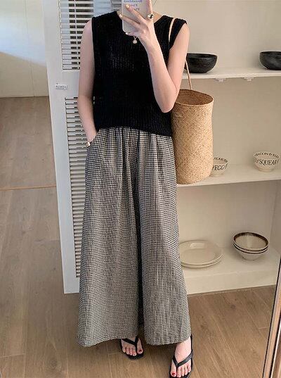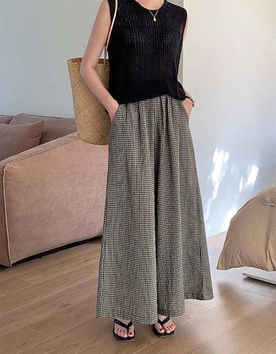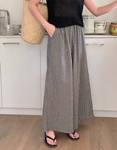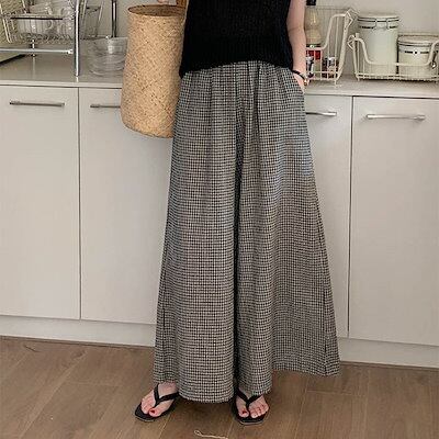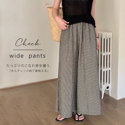 ワイドパンツ ガウチョパンツ チェック柄 レディース チェック パンツ ワイド 綿 コットン ロング ズボン スカンツ スカーチョ ガウチョ ナチュラル 涼しい 楽ちん 大きいサイズ ウエストゴム 体