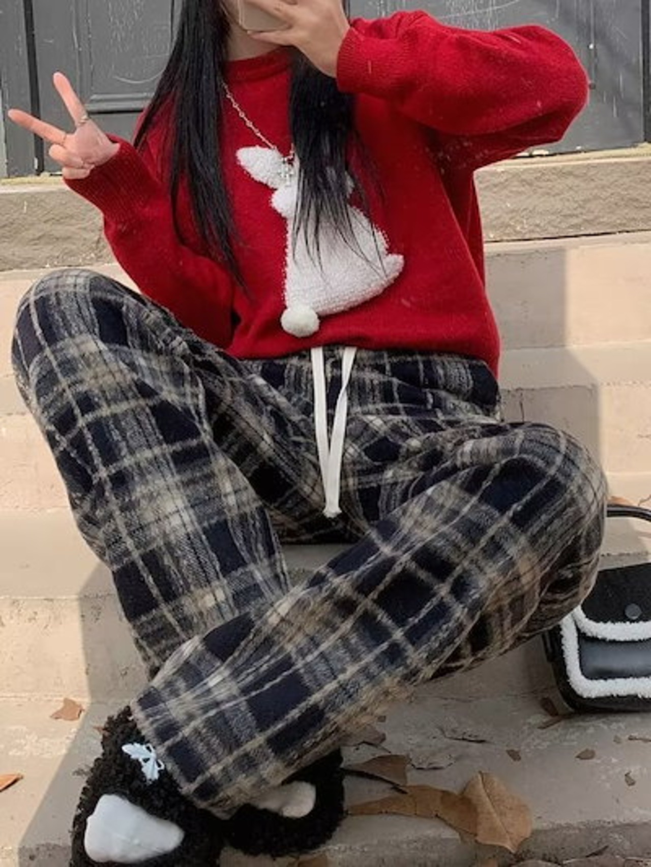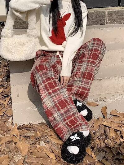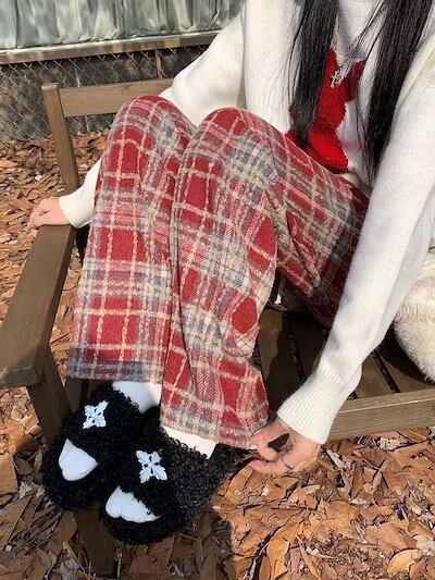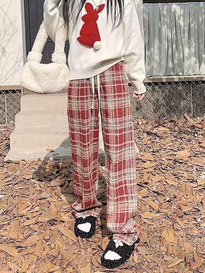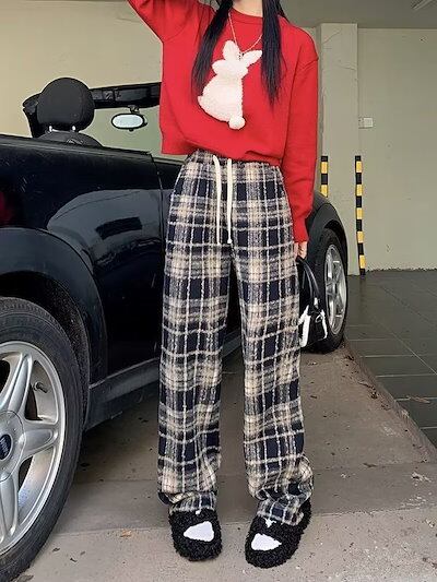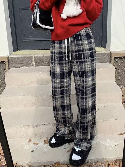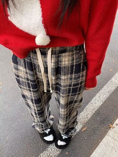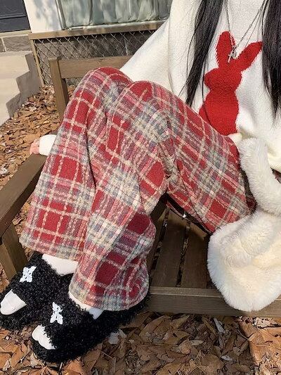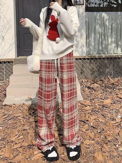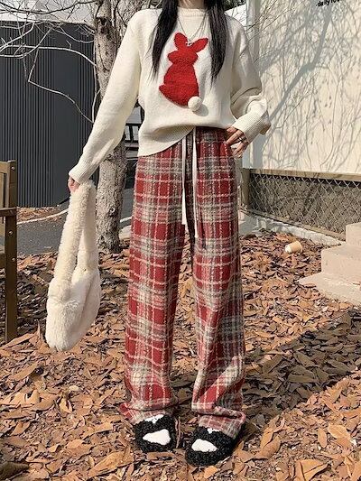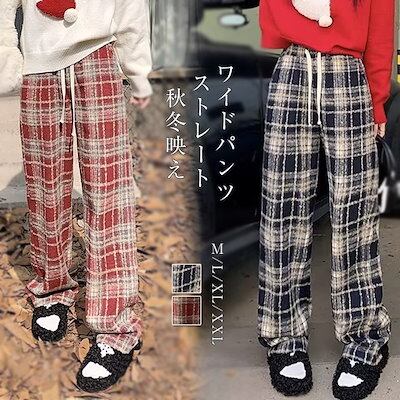 ワイドパンツ レディース ストレートパンツ 秋冬 チェック柄 ロング丈 ウエストゴム 紐 ポケット付き ボトムス ガウチョパンツ カジュアル 美脚 着痩せ 高見え 細見え 美脚 総柄 ゆったり シンプ