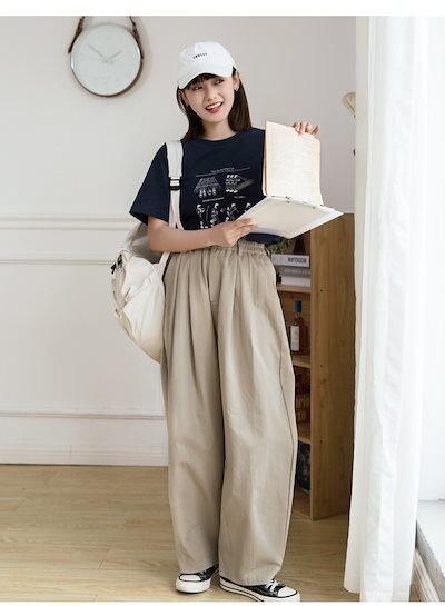 パンツ レディース ワイドパンツ ワイド ロング コットン ゆったり きれいめ ガウチョ ボトムス ストレート ズボン ハイウエスト オフィス 長 ズボン オフィスカジュアル 通勤 通学 春 秋 冬