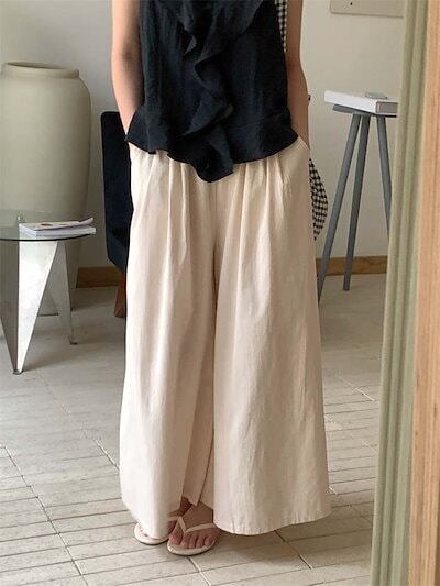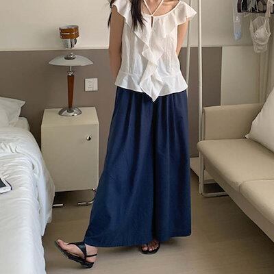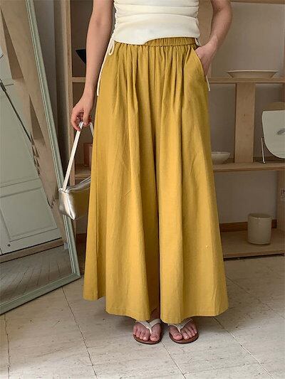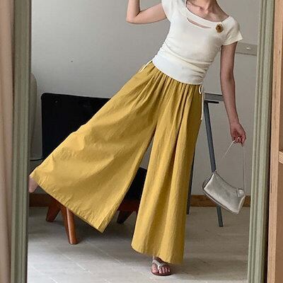 ワイドパンツ スカーチョ レディース ボトムス ロング丈 フレアパンツ イージーパンツ ガウチョパンツ 無地 リラックスパンツ ふんわり 薄手 ウエストゴム カジュアル ナチュラル オシャレ キレイ