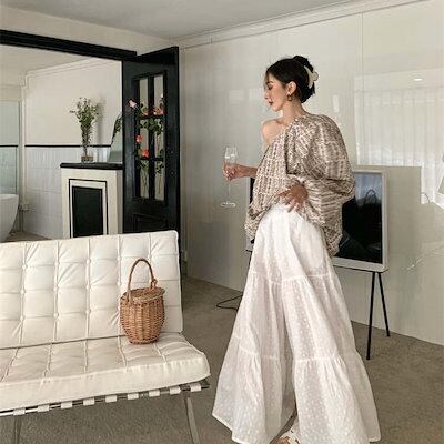 ワイドパンツ レディース きれいめ スカーチョ 刺? ワイド ロング ガウチョパンツ ガウチョ スカンツ ロングパンツ ウェストゴム スカート見え ギャザー ペチコート ペチパンツ インナーパンツ ゆ