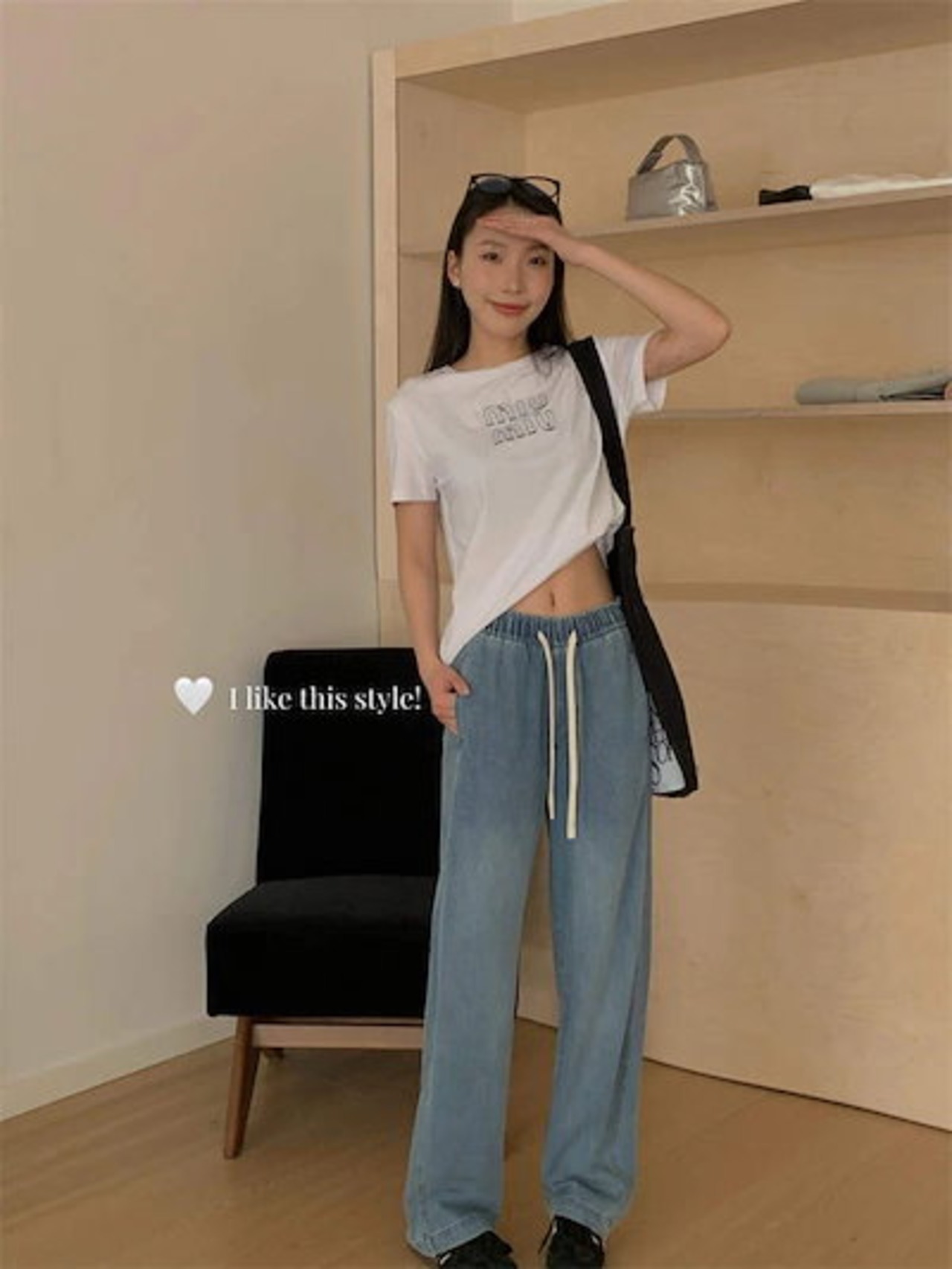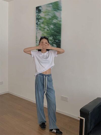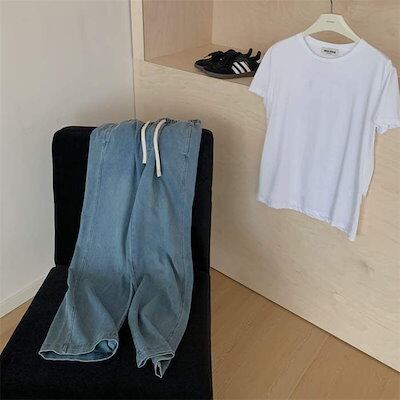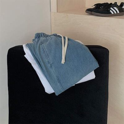 ワイドパンツ デニム レディース パンツ 涼しい 夏 ひんやり 接触冷感 ズボン ロング ウエストゴム ガウチョ 薄手 大人 きれいめ ボトムス 楽ちん ゆったり カジュアル お洒落 無地 着痩せ