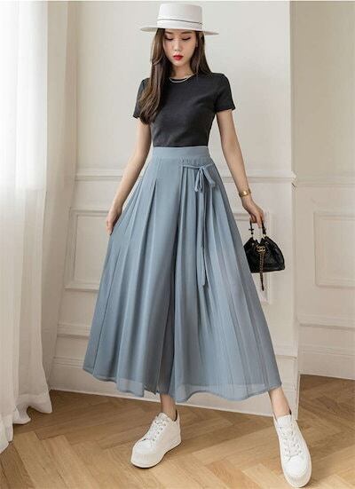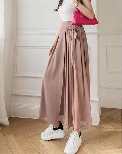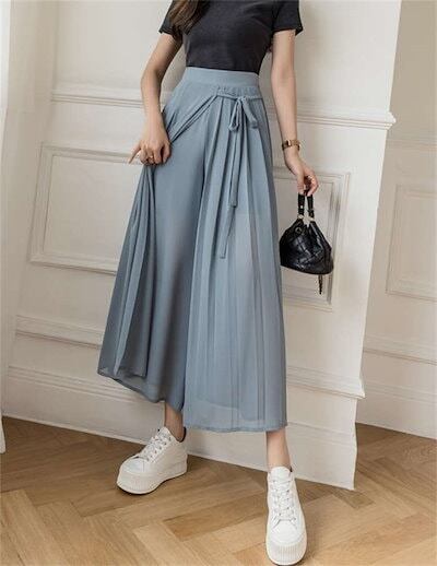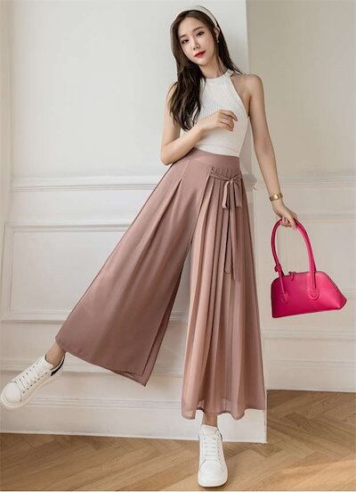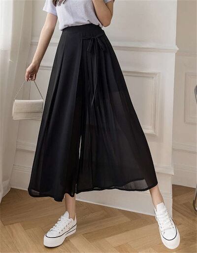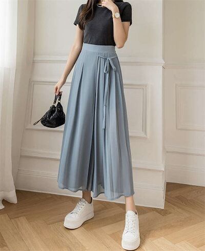 ワイドパンツ レディース ガウチョパンツ シフォン プリーツ フレアパンツ ボトムス スカーチョ ゆったり レディース オシャレ リボン 着痩せ 美脚 スカート風 おしゃれ カジュアル 通勤 きれいめ